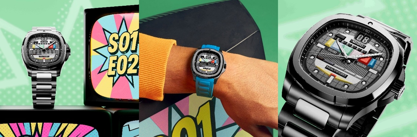 MIDO美度表推出全新 Multifort TV Big Date 特別版 S01E02,經典續作奪目登場,復古魅力華麗回歸。七〇年代是電視主宰世界的黃金年代,彩色訊號的普及掀起劃時代的文化浪潮,影像以鮮明色彩走進日常生活,改變了世界的距離與時間的節奏。那是一個科技與想像力並進的時代,圓角方形的電視螢幕成為最具代表性的生活符號。MIDO從這份舊日風華汲取靈感,讓電視影像在腕間重生,化為充滿節奏與舞台張力的全新創作,讓每一次看時間的瞬間,都成為不凡的演出。