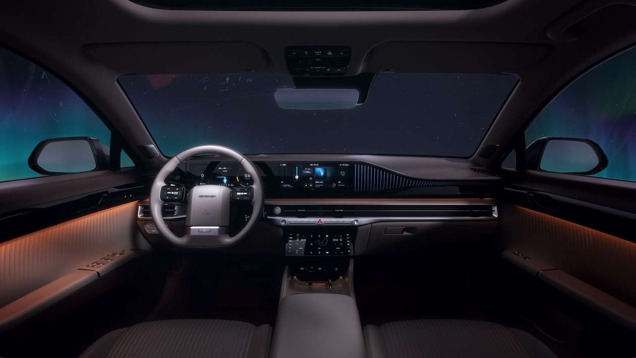打開車門後,可以看見全新的 Azera 採用簡約且科技的風格來做為整體的主軸,同時原廠也為這輛車導入了數位儀表與中控資訊螢幕所組成的連屏系統,也為增加整體的未來感,就連空調系統也都使用了觸控界面,並且在車內大量的氛圍燈與高級的複合材質相互搭配下,瞬間營造出高端大氣的內飾感受。