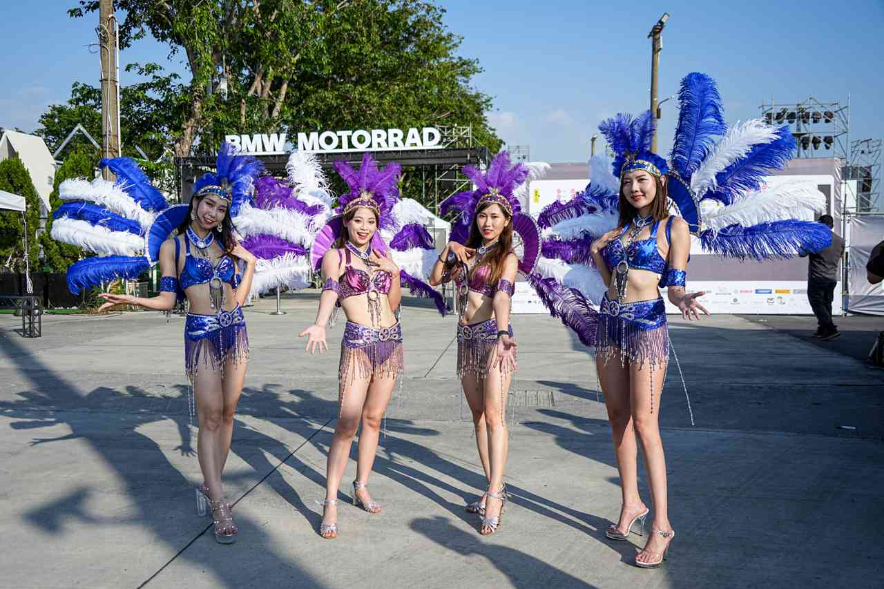 身著華麗藍紫色羽毛服裝的活動舞者在會場中亮相,她們熱情奔放的舞蹈為白天的會場增添了濃濃的嘉年華氣氛。