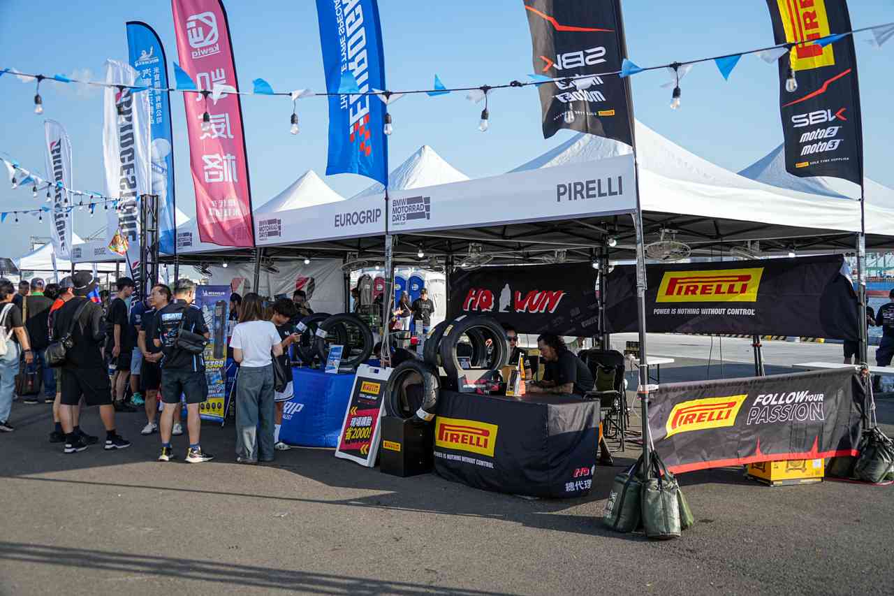會場設有廣大的周邊商品和協力廠商市集區。知名輪胎品牌 Michelin 的輪胎與多家摩托車配件廠商設攤,提供車友一站式的部品選購與技術諮詢服務。