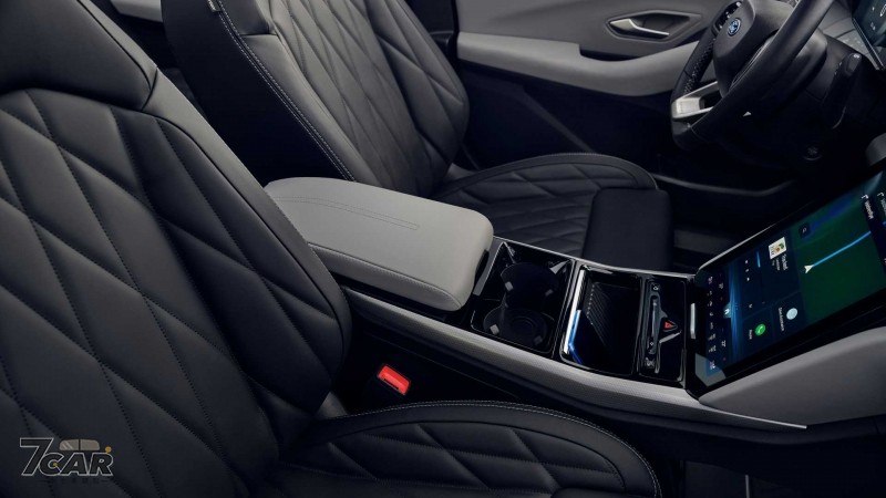 進入車內,Ford Explorer EV 採用了全新的 15 吋 Ford Sync Move多媒體觸控螢幕,且可進行 30 度以上的弧度上下移動。螢幕下方設有觸控按鍵,可以直接控制音量等功能。配備上具備免持鑰匙、雙區恆溫空調、無線 Android Auto 和 Apple CarPlay、10色氣氛燈等。