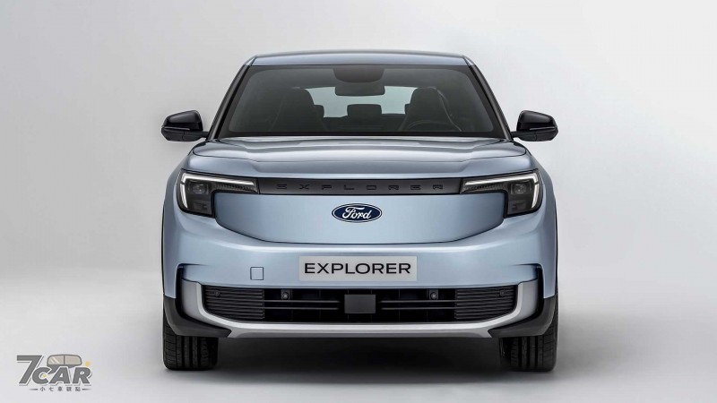 Ford Explorer EV 將在德國科隆的全新電動車工廠生產,產品定位低於 Mustang Mach-E,其外觀設計上有著較 ID.4 更為方正且粗曠的造型,顛覆過往電動車講求低風阻係數而過多的圓潤流線設計。同時可以在車頭看到加入現在相當流行的的貫穿式風格設計,於頭燈中央導入一組黑色飾條,上方擁有 EXPLORER 的字樣,兩側的頭燈則導入相當醒目的倒 L 形 LED 日行燈,盾形的封閉式護板則鑲入 Ford 品牌廠徽,前保桿下方則有 U 形銀色飾條點綴。