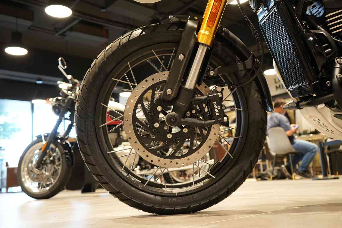 簡單介紹一下Scrambler 400 XC,它付諸許多設計,讓它能在非鋪裝道路優雅前行,首先便是前19吋、後17吋鋼絲框,其優點是能承受更多來自路面的衝擊,且新世代採用的是無內胎設計,更換輪胎毫無壓力。而儀錶板前方的小風鏡,也將越野感向上拉抬,即便只是個點綴,卻不得不讓人佩服Triumph對復古味的詮釋。