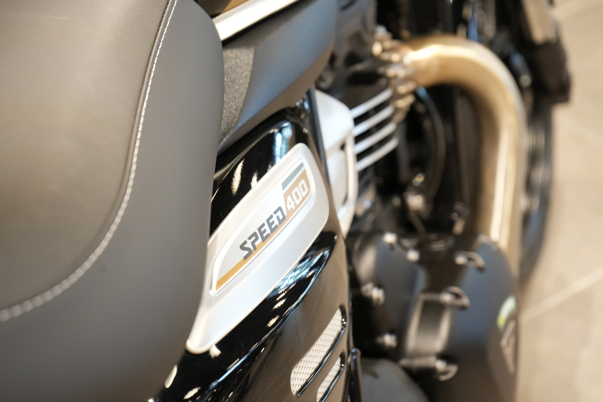 與此同時,Speed 400也新增新車色,與Scrambler 400 XC同為白色,但最大的不同是油箱多了一條金色拉線,僅僅只是這條拉線,卻讓整部車看上去更加精緻與獨特。目前官方售價為19.6萬元,若有興趣的消費者不妨前往展間體驗。