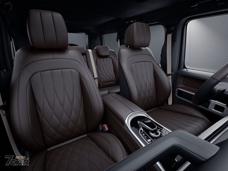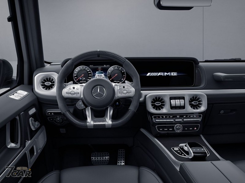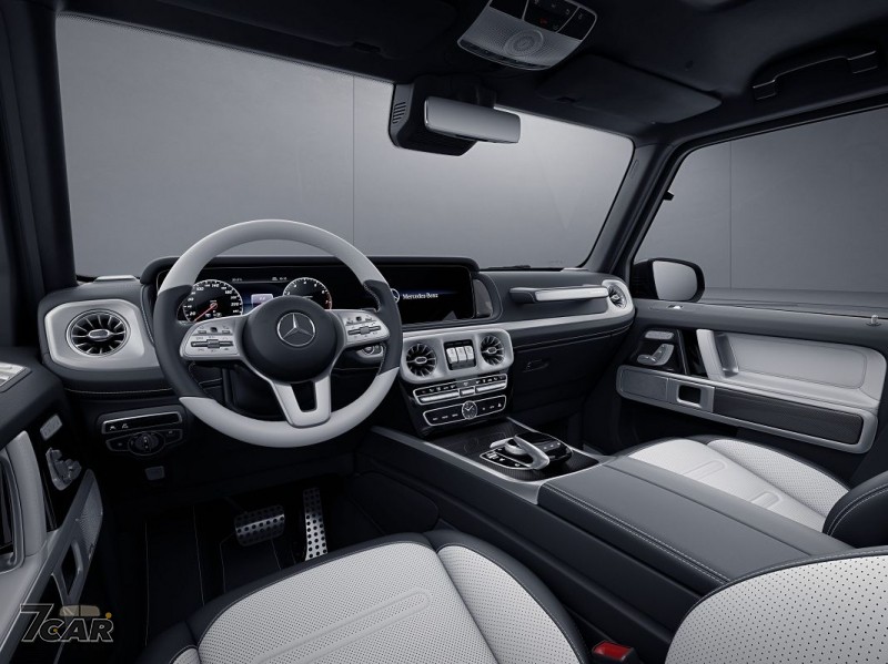 G 500 AMG Line Hero 則換上了消光瓷釉白車漆,搭配 AMG Line 與夜色套件,配上 20 吋 AMG 五輻雙肋式霧黑輕合金輪圈、Exclusive Line 豪華內裝套件、G manufaktur Nappa 真皮座椅、雙色 Nappa 真皮包覆的多功能跑車方向盤,飾板則改以金屬編織紋設計,更添專屬風格。