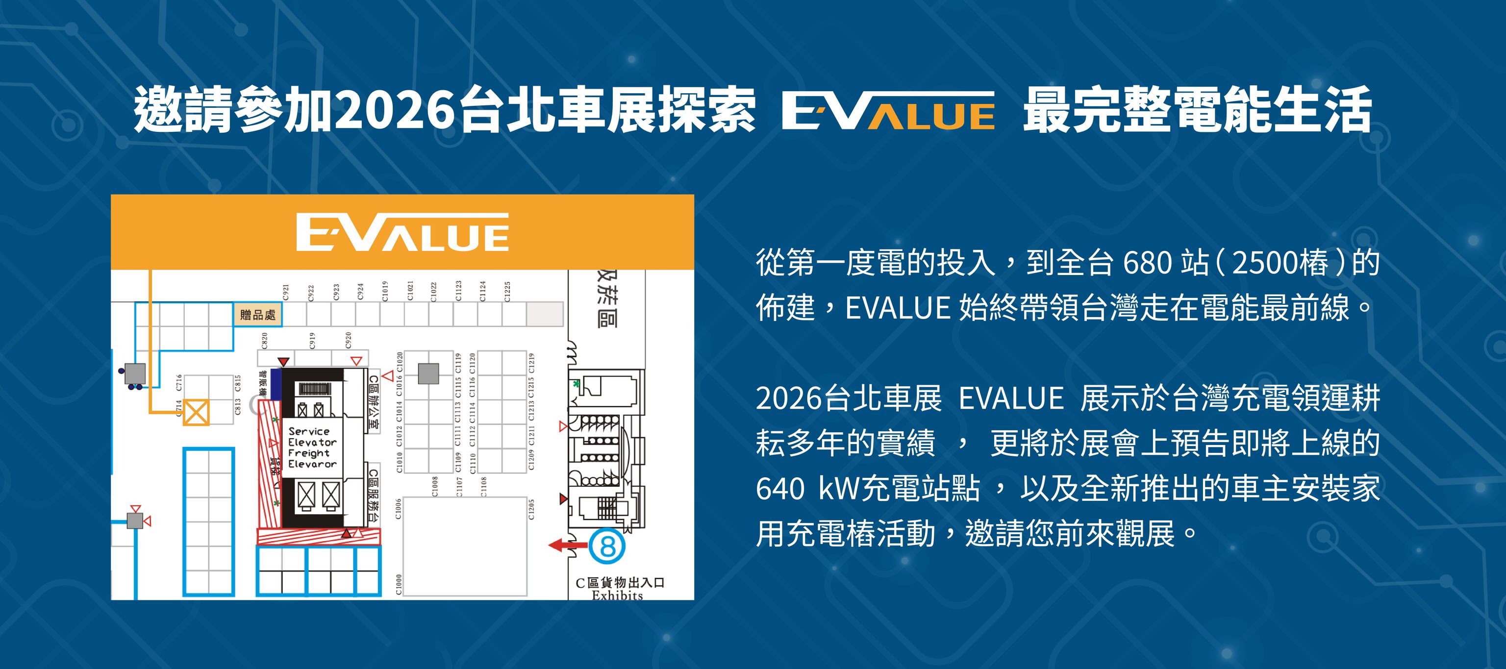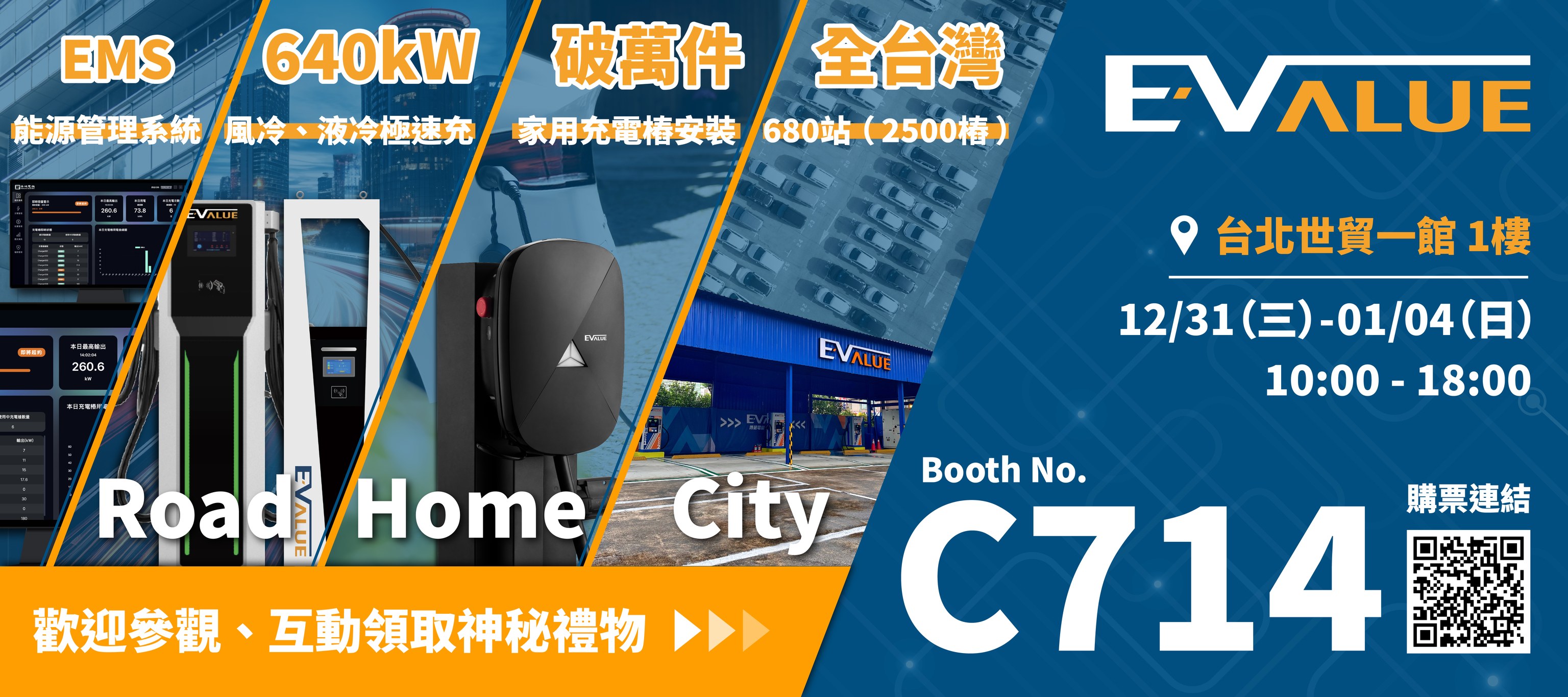 華城電能 EVALUE 持續貫徹「以人為本」的品牌理念,結合自主研發的 EMS 智慧能源管理系統,並與政府單位、國內外車廠、連鎖通路及大型場域建立長期合作關係。誠摯邀請各界於展期間蒞臨台北世貿一館 C714 攤位,親身感受全台第一充電營運商如何以 680 站、萬戶家庭的實績基礎,串聯城市與生活,持續為台灣打造更成熟、安心的電動車充電環境。
