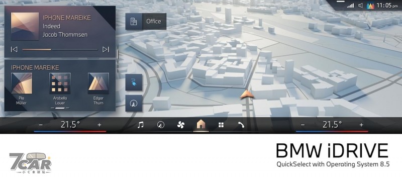因此在最新的 iDrive 9 / 8.5 當中,BMW 將選單結構參考了電子用品的概念,重新配置系統的待機頁面 (Home Screen),以零層次 (zero-layer) 概念將多數功能都改為無需進入過多選單即可取用,搭配 QuickSelect 來立刻操作車輛設定、聯絡人、娛樂系統等,選擇某項功能後,系統還會保留迅速返回 Home Screen 的快捷按鈕,讓操作過程更簡便。