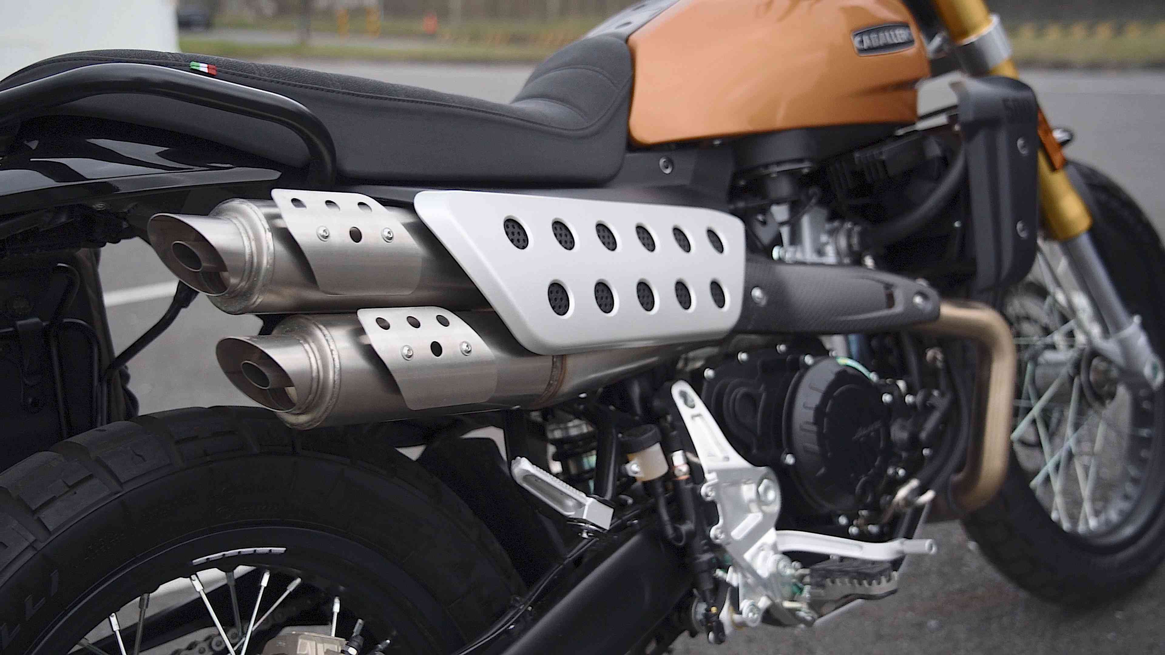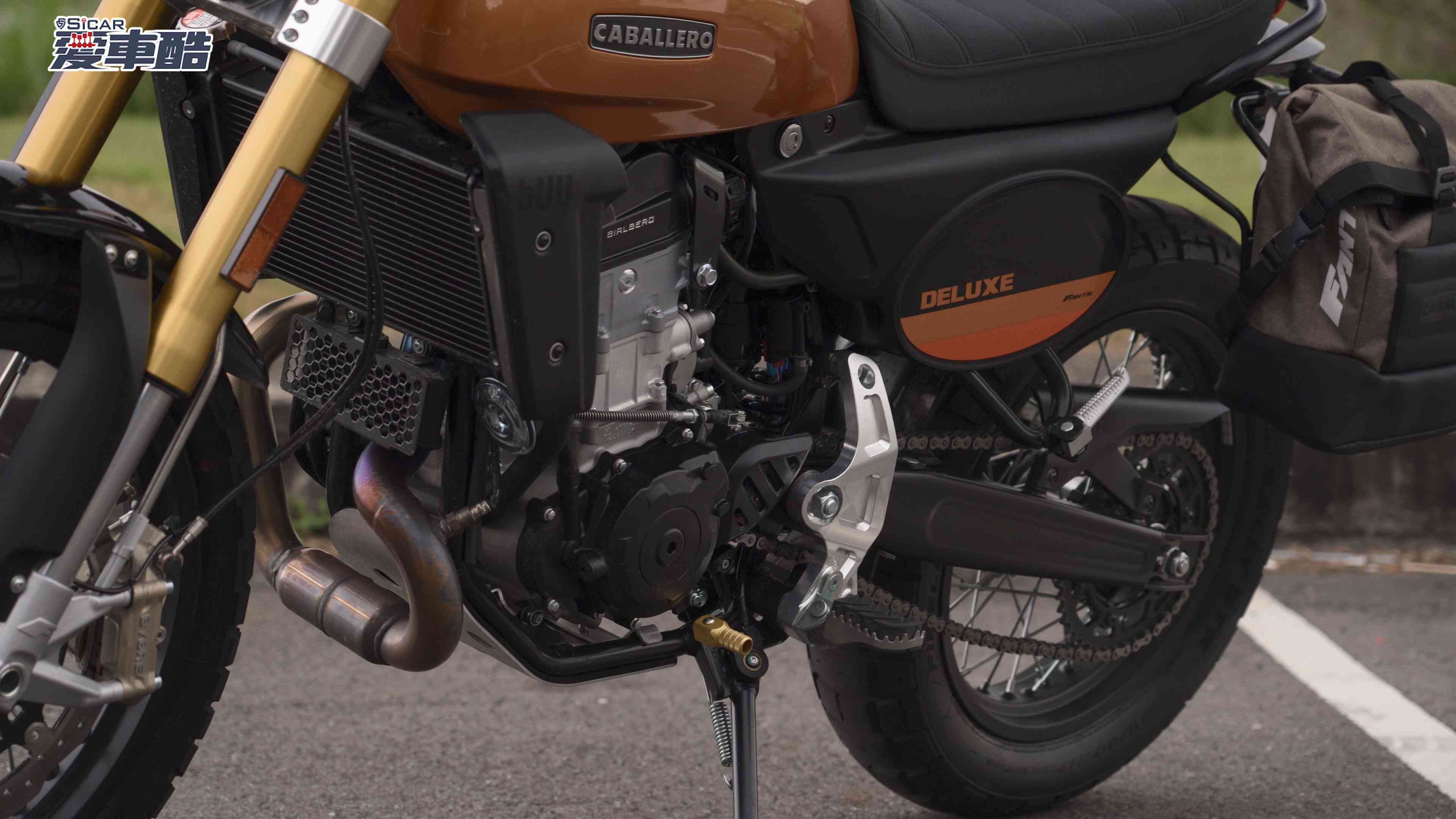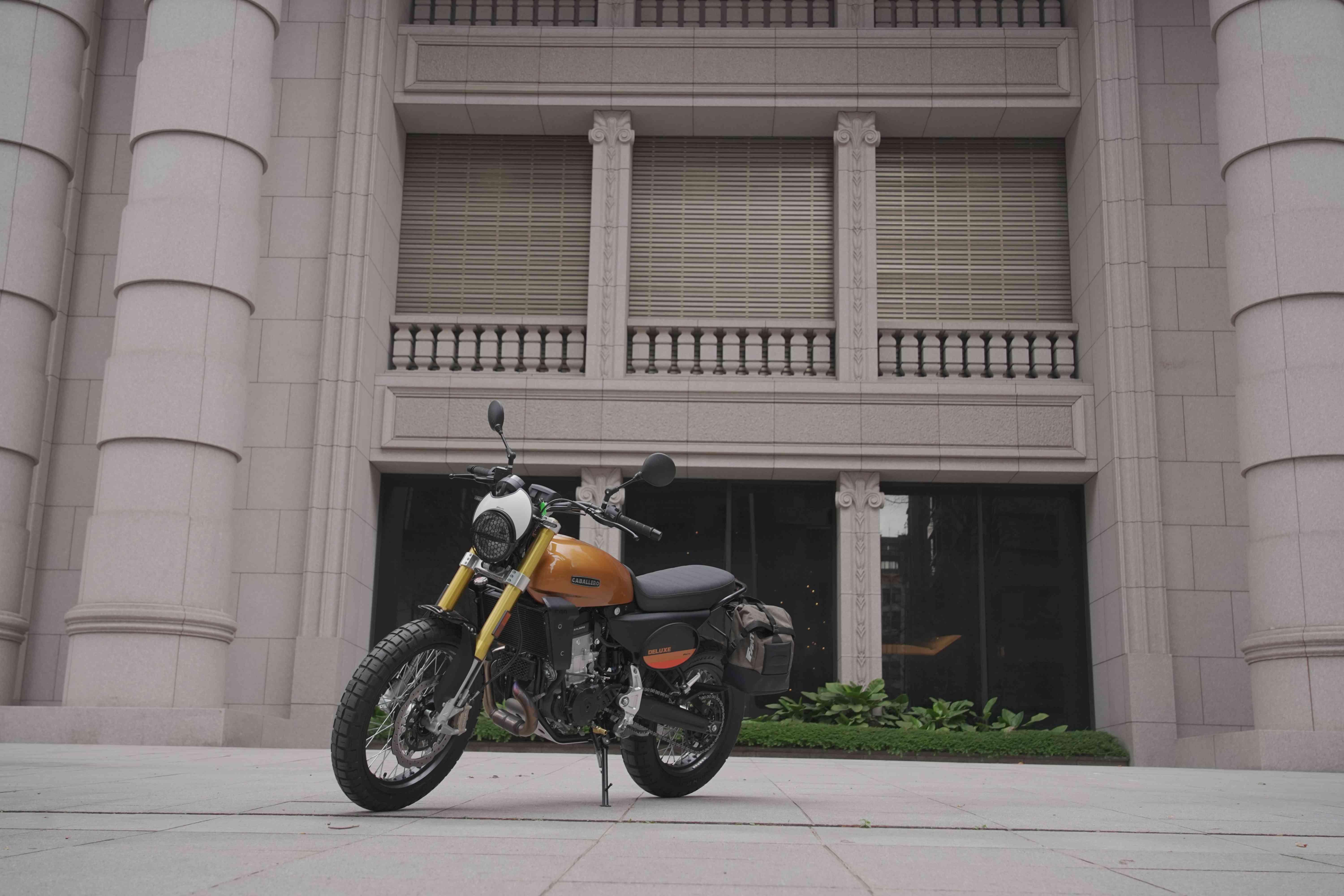 Caballero 這個名字源自西班牙文,意指「騎士」或「紳士」,而這台車的外觀確實把這份氣質詮釋得恰到好處。今天試駕的Deluxe 版本以銅色呈現,配色低調而精緻,相較 Scrambler 版本更顯成熟品味。油箱輪廓保留了經典弧度,搭配前方大燈護網與小風鏡等配件,復古意象清晰卻不落俗套。