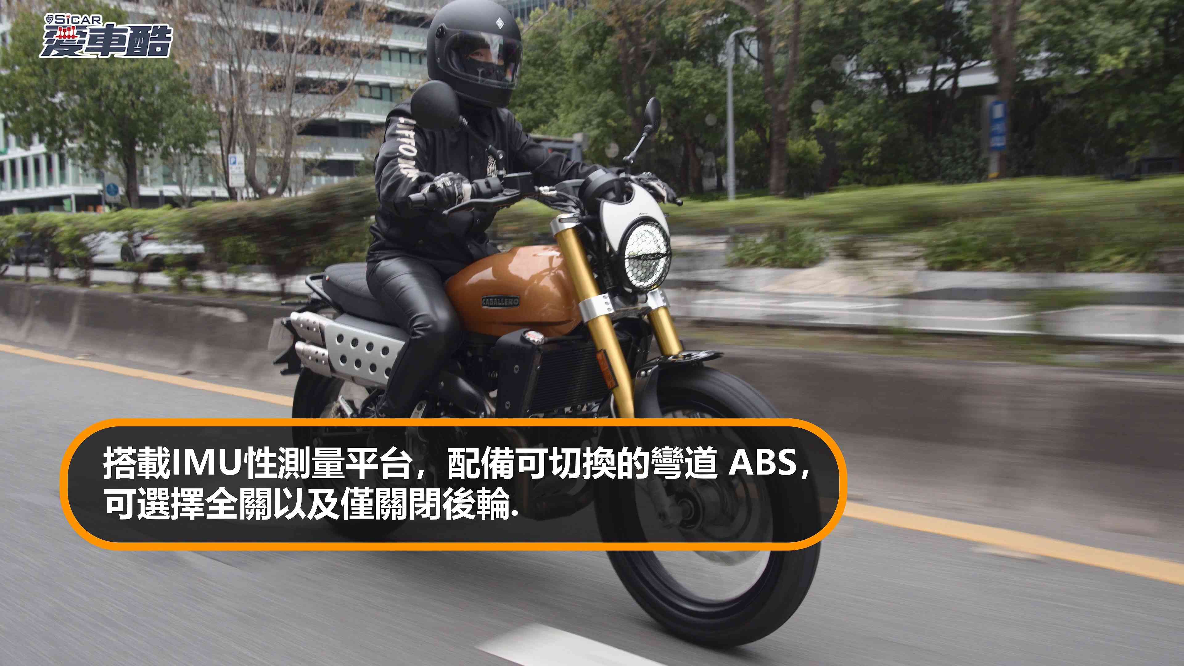 Caballero 500 的配備規格在中量級 Scrambler 市場中具有相當的獨特性。搭載同級唯一的 IMU 慣性測量單元,讓整套電子輔助系統得以感知車輛姿態,提供更精準的安全介入。彎道 ABS 提供兩段模式,可全關或僅關後輪 ABS,以因應不同路況需求——切換至全地形模式時,ABS 同步關閉,真正放開騎士去應對碎石土路。