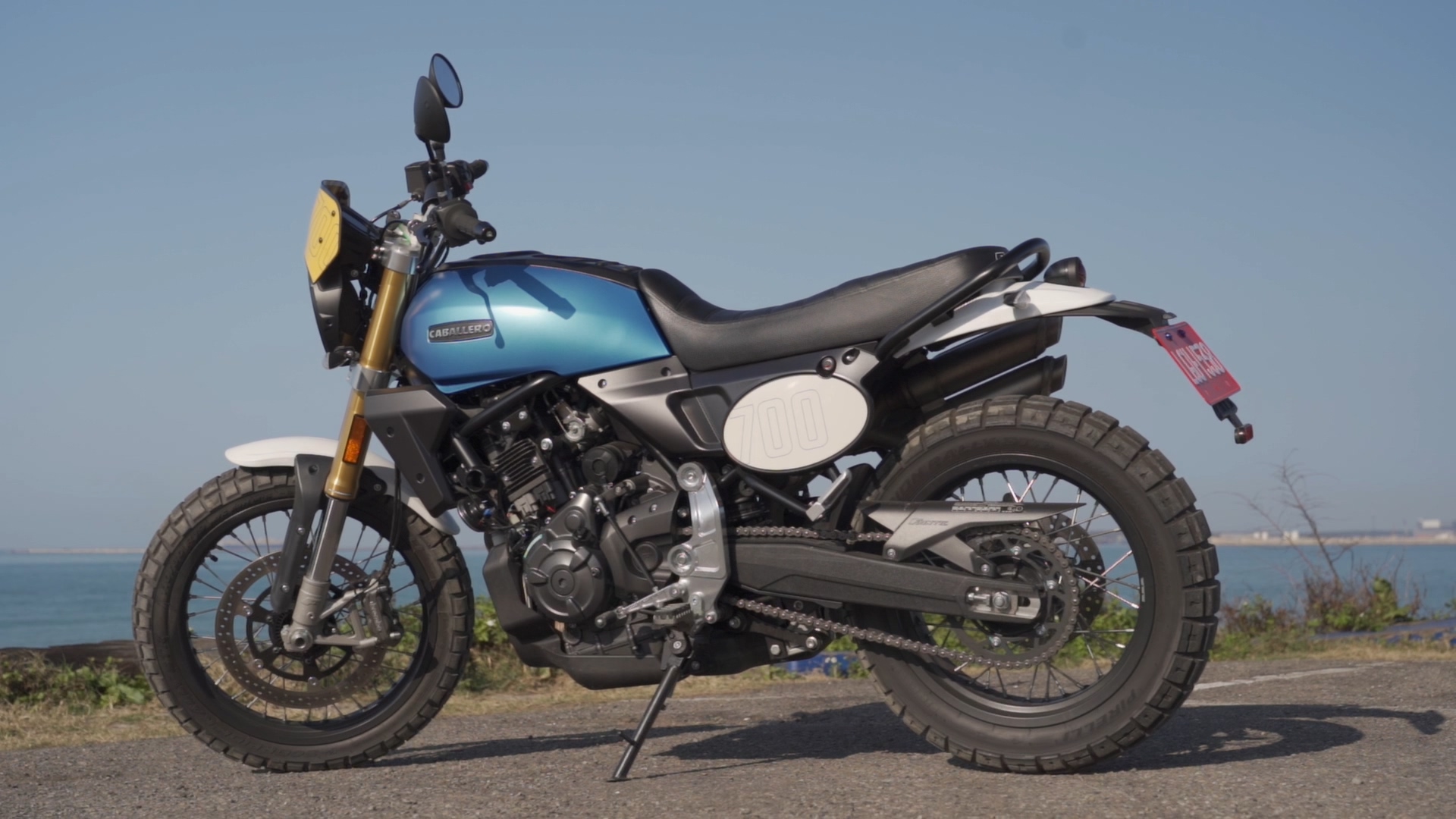 前 19 吋、後 17 吋輪框配置,搭配多功能胎,讓車輛在柏油路與碎石路面之間都能保持穩定表現。對於喜歡 復古 Scrambler 風格重機 的騎士而言,Caballero 700 在外觀辨識度上相當突出。