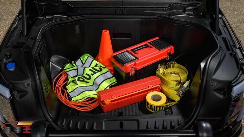 前艙蓋內可以放下拖車繩、工具箱、錐桶、反光背心、救車電線、警示牌等相關警用裝備。