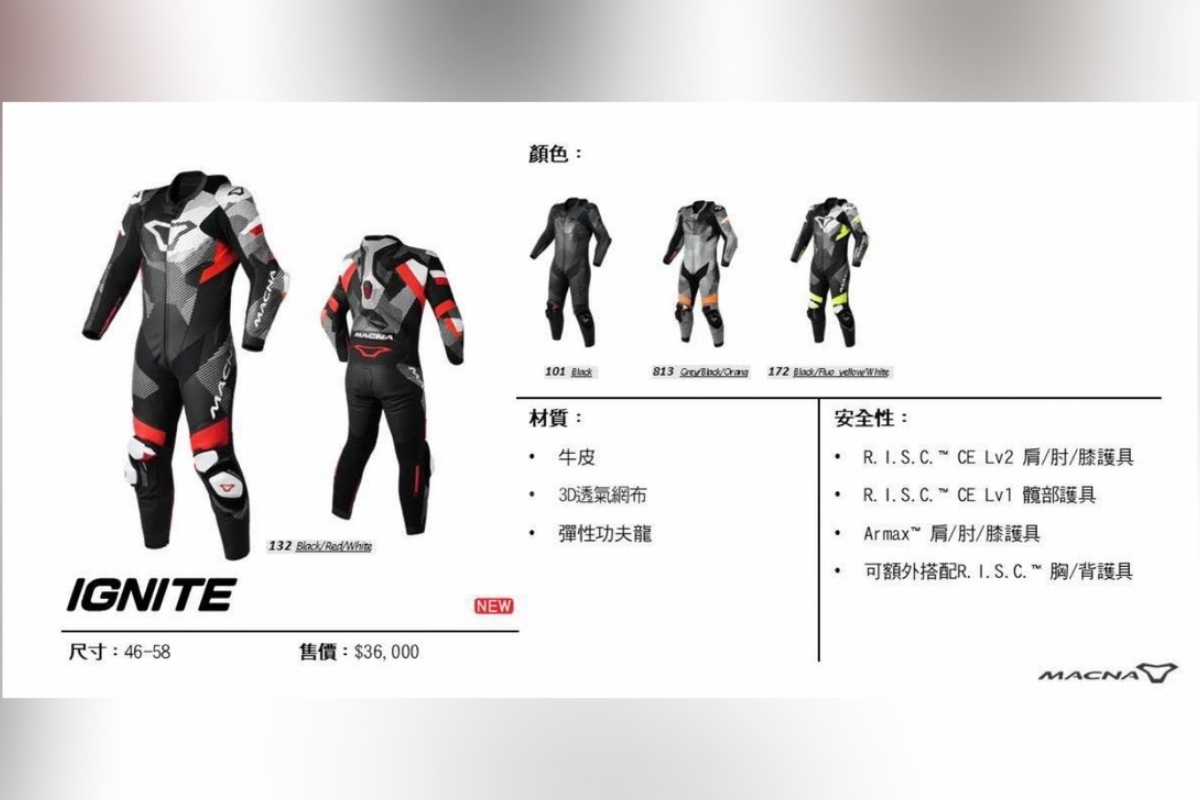 IGNITE|MotoGP等級連身皮衣 來自賽道的科技,專為炎熱環境打造: 高級牛皮+透氣打孔設計 Armax™ 無縫防護,安全無死角
