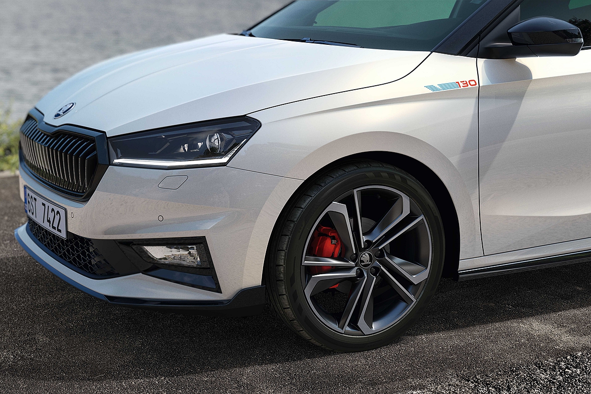 Skoda Fabia 130提供白色、紅色、藍色以及黑色四種車色可選,再搭配黑色A柱與車頂,前擾流翼、尾翼以及後保桿下分流器均採用亮黑色設計,同時前葉子板以及後尾門上都會有專屬「130」徽章並且源自賽車運動的靈感設計。