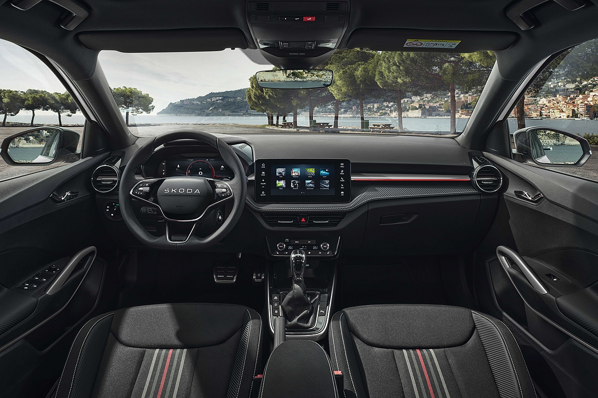呼應Skoda Fabia 130運動化定位,車艙座椅額外設計側墊提供身體更好的包覆支撐性,並採用三輻多功能運動方向盤、不銹鋼煞車/油門踏板等配備。科技方面10.0吋數位儀表列為標準配備,並可選配9.0吋中央資訊娛樂螢幕。