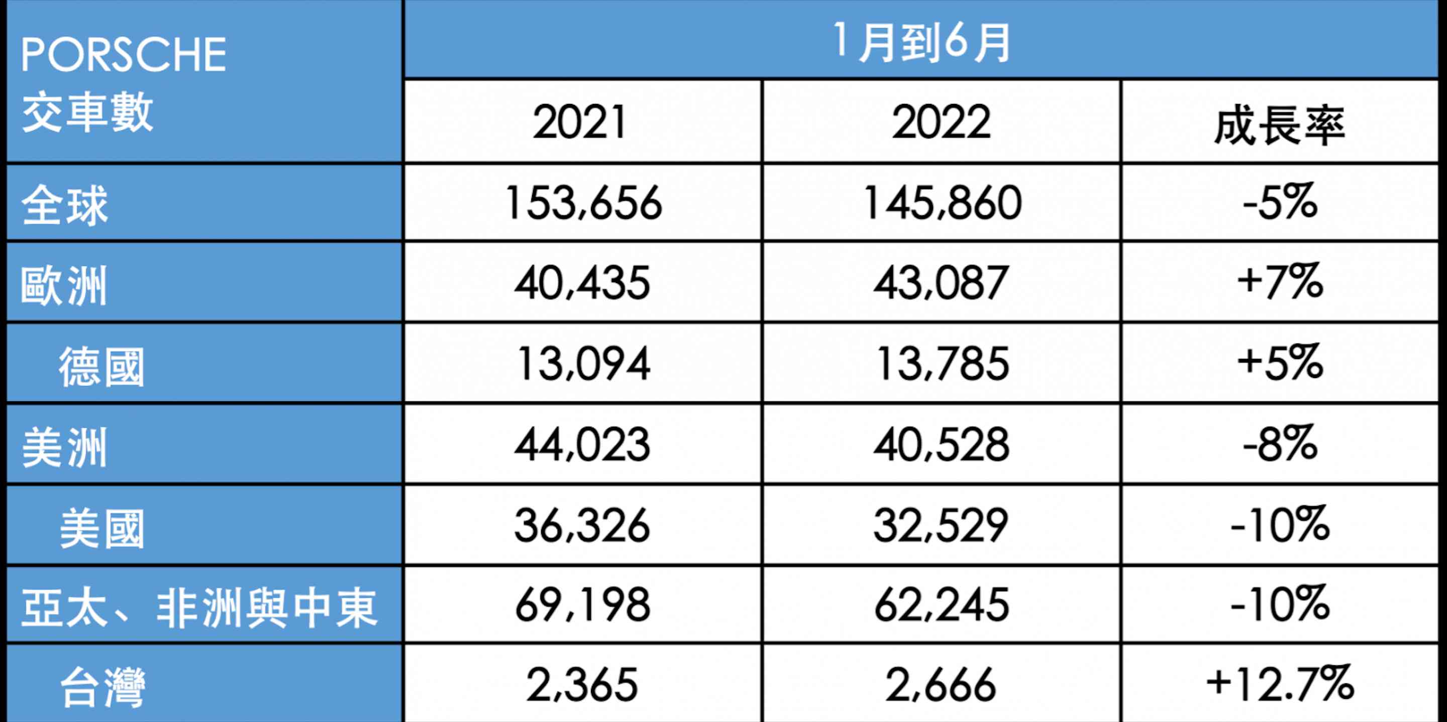 保時捷2022上半年全球交車145,860部 台灣市場交車數達2,666部創歷史新高 較去年同期成長12.7%