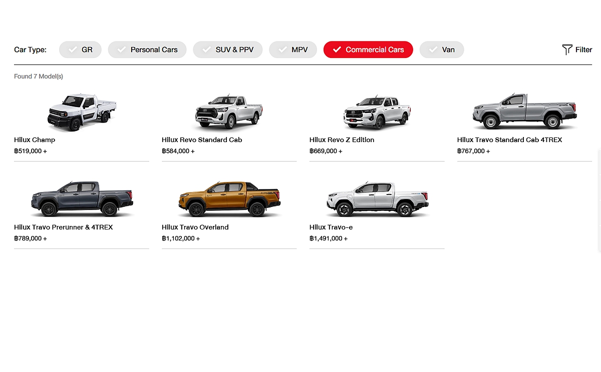 全新第九代Toyota Hilux副車名為Travo,率先開賣的泰國提供Standard Cab單廂、雙廂Prerunner、頂級Overland以及最新追加的純電Travo-e等銷售車型,建議售價自76.7萬泰銖起跳、約新台幣73萬元,純電Travo-e則要價141.9萬泰銖、約新台幣137萬元。