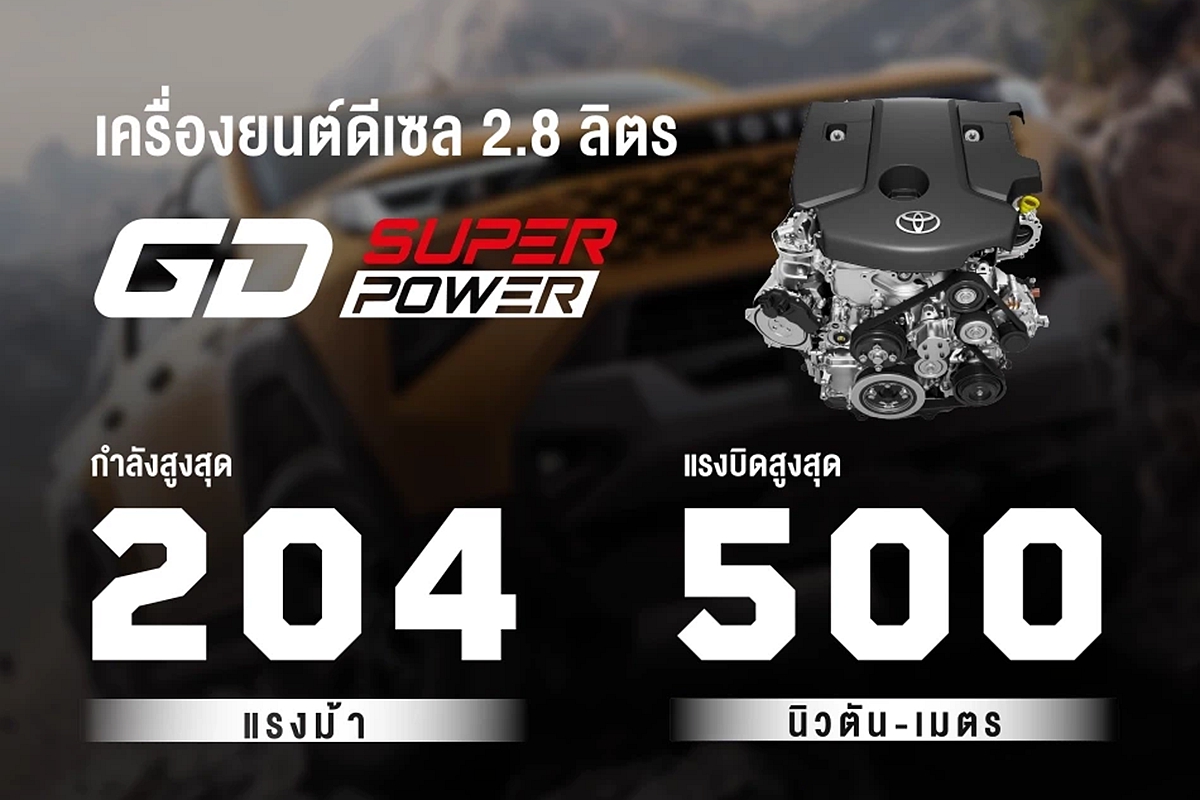 全新第九代Toyota Hilux柴油動力仍自代號1GD-FTV、排氣量2,755c.c.、i-ART共軌直噴四缸渦輪柴油引擎,可提供204ps最大馬力與51.0kgm峰值扭力,並搭配六速自排變速系統且相同有後輪驅動、4TREX四輪驅動附後差速鎖可選。
