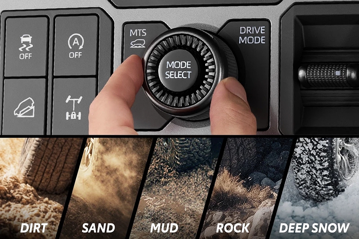 在Toyota Hilux Overland頂級車型方面,4TREX四輪驅動版本除了基礎的ECO/NORMAL/SPORT等行車模式之外,還額外提供多達五種的MTS地形選擇模式,讓駕駛能在相對應的路況下使用合適模式順利通過。