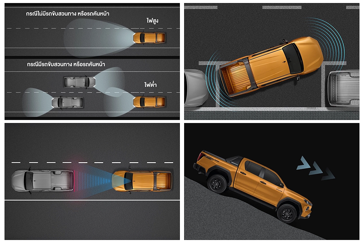 行車輔助系統層面,全新第九代Toyota Hilux在泰國依據車型最多配有碰撞預防、車道偏離預警、BSM盲點偵測、RCTA後方車流警示、DRCC全速域定速巡航、自動遠光燈、PVM環景影像、HAC上坡起步以及DAC斜坡輔助等系統。