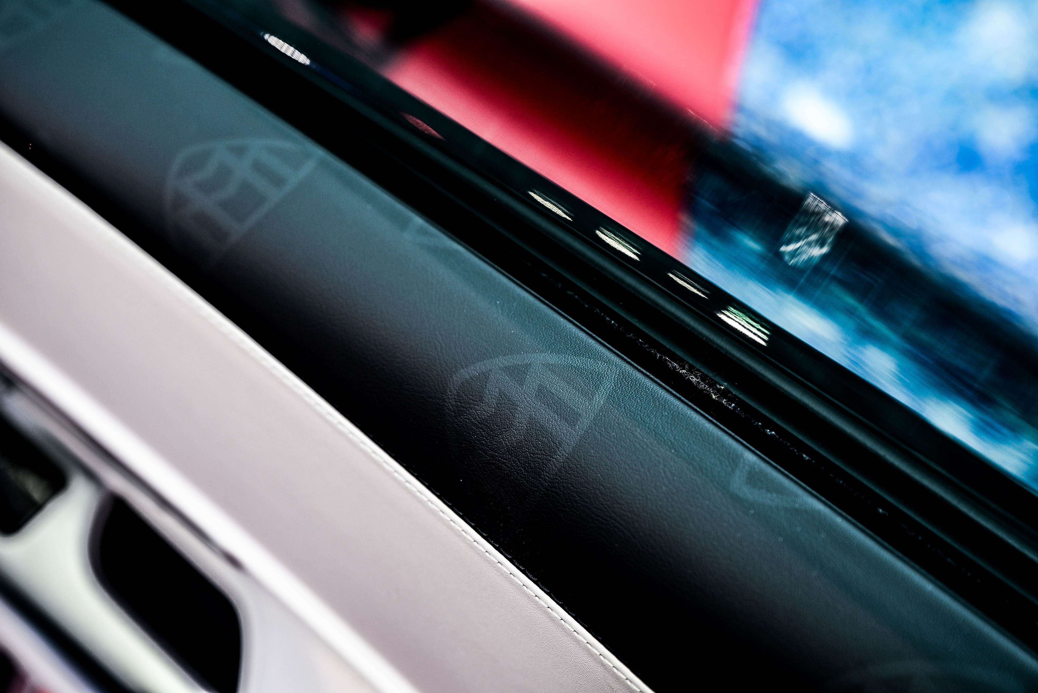 不僅如此,Mercedes-Maybach SL 680 Monogram Series 的引擎蓋更採用革命性的塗裝黑科技「PixelPaint」,讓曜石黑(obsidian black metallic)的引擎蓋,可佈滿石墨灰(graphite grey)Maybach 的專屬徽飾。簡單來說,PixelPaint 有別以往用噴槍塗漆,而是用數位光學技術「雕刻」專屬圖案。透過 1,000 個微型噴嘴,噴出的漆滴只有 20 到 50 微米,比人類髮絲還細,奈米級的精準上色,讓圖案邊緣銳利無比。在光影之下,引擎蓋上 Maybach 經典圖騰所呈現的立體感,則來自於四層清漆,並經過三次純手工打磨,層層堆疊而成。雖然有高科技加持,但每一層清漆的打磨都要由工匠花費數小時手工完成,是對精準工藝的極致追求,讓引擎蓋不只是單純的鈑金,而是一件為你量身打造的藝術品。