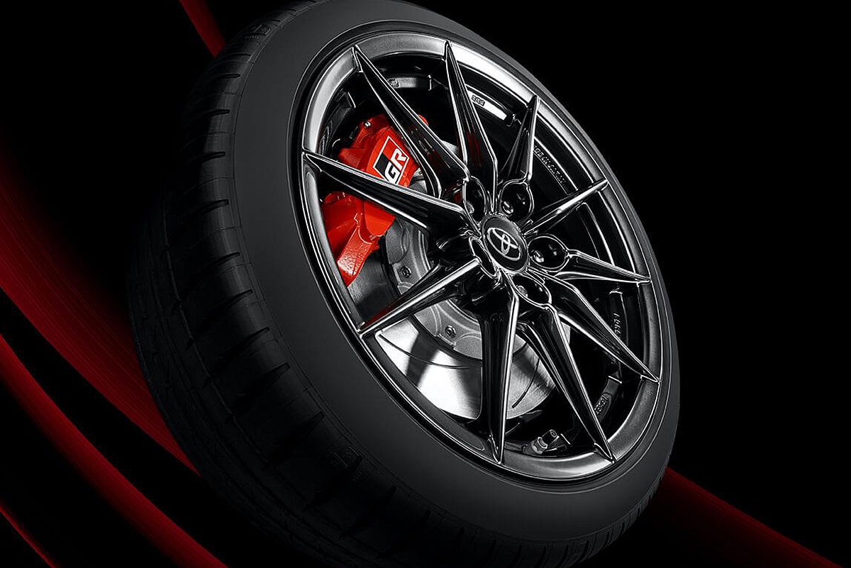 配備方面,Toyota GR Yaris無論自排還是手排車型皆標配18吋BBS鍛造輪圈、碳纖維車頂、輕量化鋁合金引擎蓋/前車門/尾門、GR銘牌、GR紅色塗裝卡鉗等,而自排車型更多了空力孔洞後保桿設計。