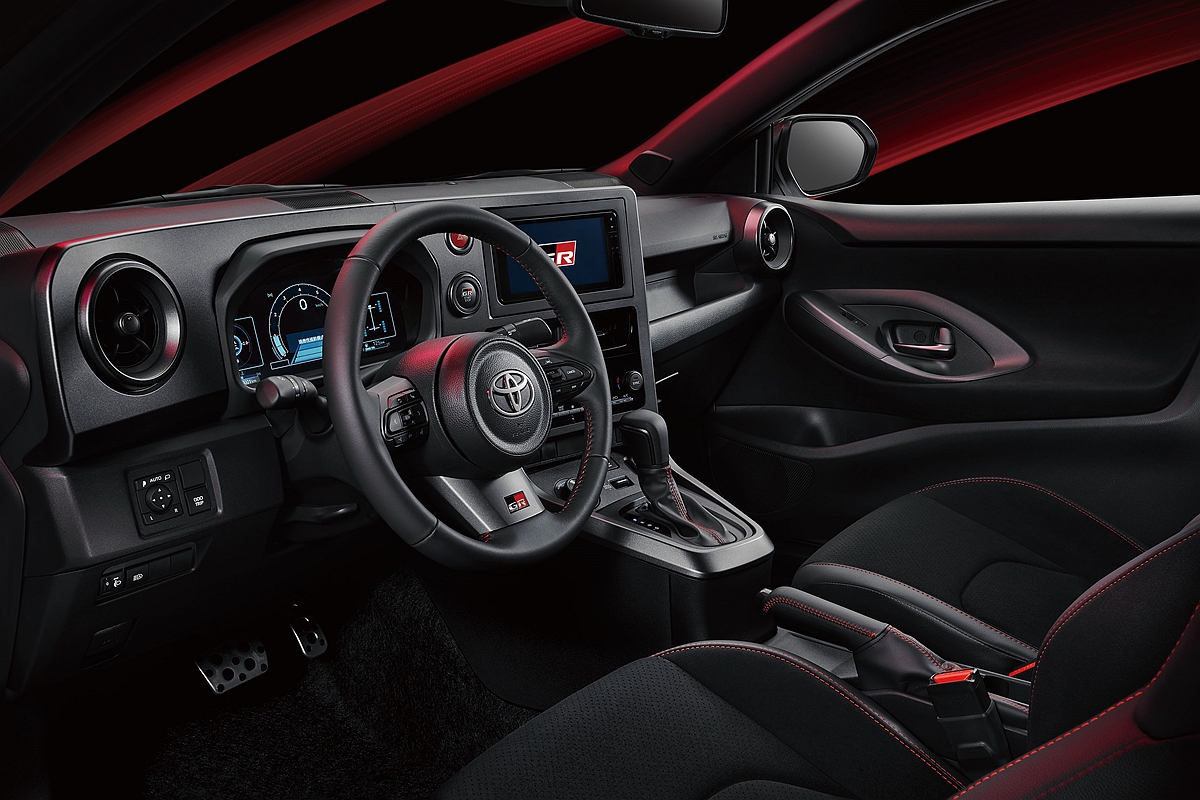 內裝方面維持BRIN NAUB類麂皮與豪華皮質前座椅、三幅式真皮方向盤、GR Full TFT 12.3吋數位儀表板、7.0吋中央觸控螢幕、雙區獨立恆溫空調等等。當然,Toyota GR Yaris 8AT自排車型絕對是配有方向盤換檔撥片的。