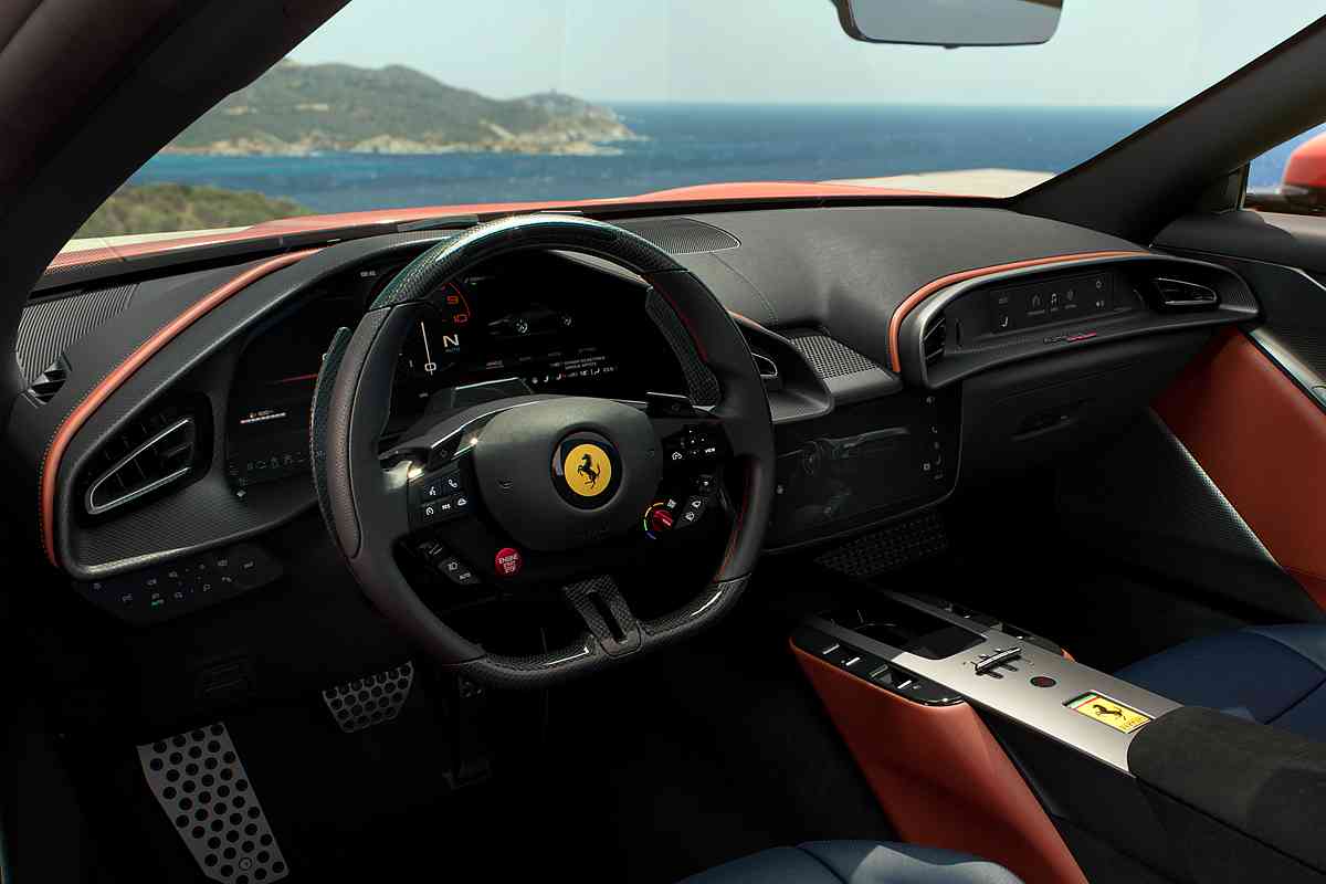 內裝設計方面,Ferrari Amalfi Spider 沿用了 Ferrari Amalfi 的雙座艙架構與全面升級的人機互動介面。主要特色包括配備實體按鍵的全新方向盤、標誌性引擎啟動按鈕,以及整合式中央顯示螢幕;各項控制裝置亦經過精心配置,即使在激烈駕駛情境下,仍能保有直覺且便利的操作體驗。2+ 座椅配置大幅提升車輛實用性,後座亦可作為額外置物空間,同時也方便與孩童一起出行。此外,新車亦引入融合於後排座椅靠背的擋風板,只需一鍵操作,即可在敞篷駕駛時有效減少座艙內的紊流,提升整體乘坐舒適性。