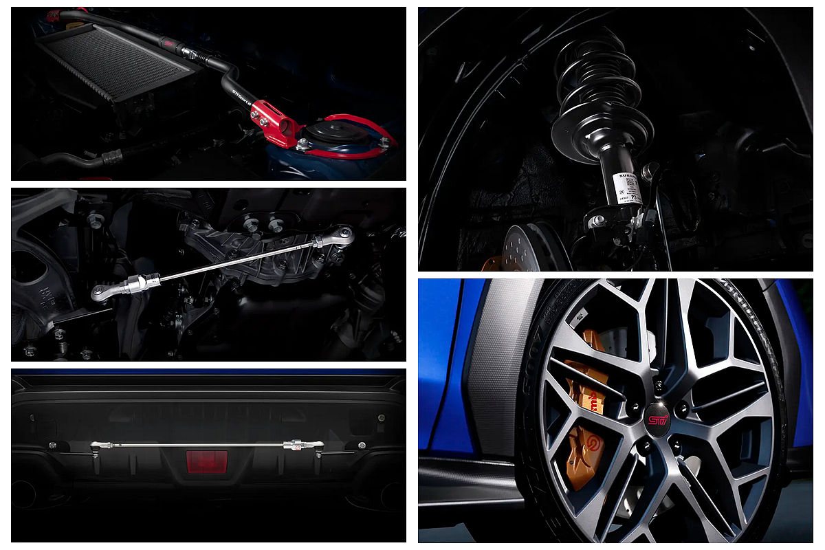 Subaru WRX STI Sport♯是一款STI完整車型,標配STI底盤拉桿、STI引擎室拉桿、STI後拉桿與ZF生產的電子減震筒等,再搭配金色塗裝Brembo前6/後2活塞煞車卡鉗、通風碟盤、19吋輪框以及普利司通Potenza S007胎款。