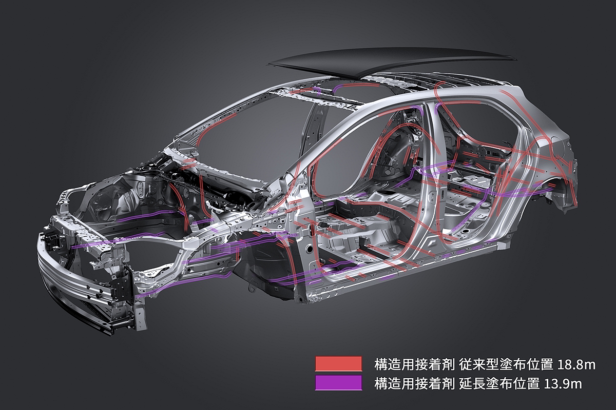 升級版Toyota GR Corolla主要改進的項目為強化車體,過往車身結構膠使用範圍從18.8m增加13.9m到32.7m總距離,並且主要集中在車身前部、地板和後輪拱周圍區域。不僅能最大程度減少重量增加,還可以增強車身剛性。