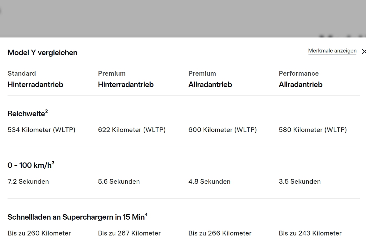 歐規版本的Tesla特斯拉Model Y Standard標準版相同採用後置馬達、後輪驅動設定,雖然無法確認電池容量是否與美規版相同,但WLTP測試下續航里程達到534公里,略高於美規車型一些,0-100km/h加速為7.2秒表現。