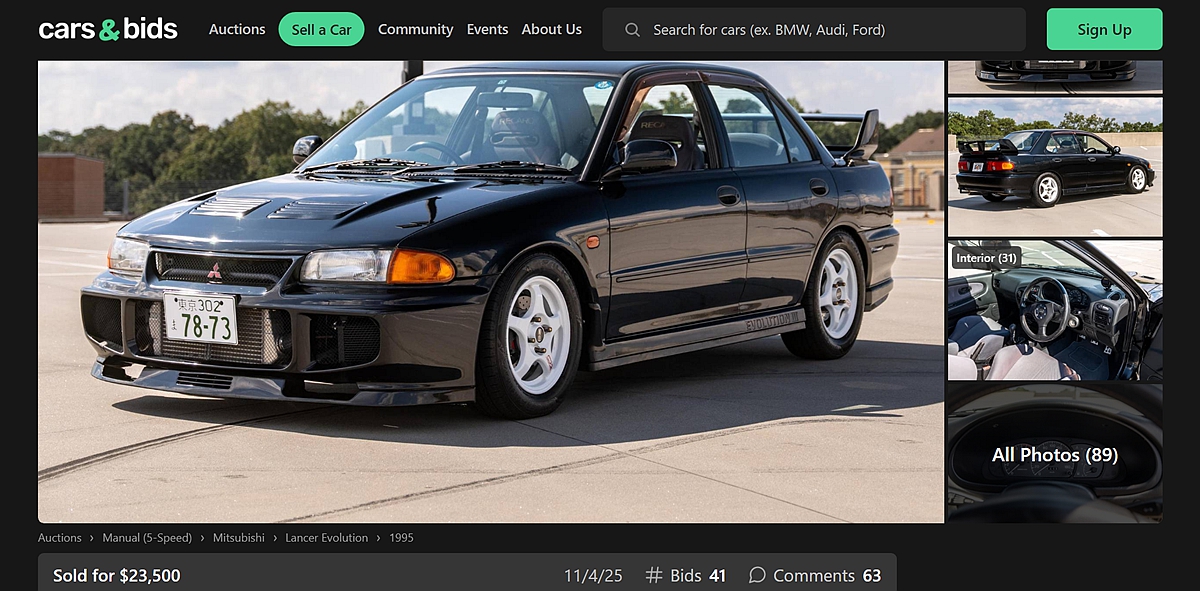 隨著美國時間11月4日凌晨拍賣時間結束,這輛無底價起標的Mitsubishi三菱Lancer Evolution III GSR,在經過激烈的41次出價之後最終拍出23,500美元、約新台幣73萬的身價。老實說,這價格確實超乎預期。