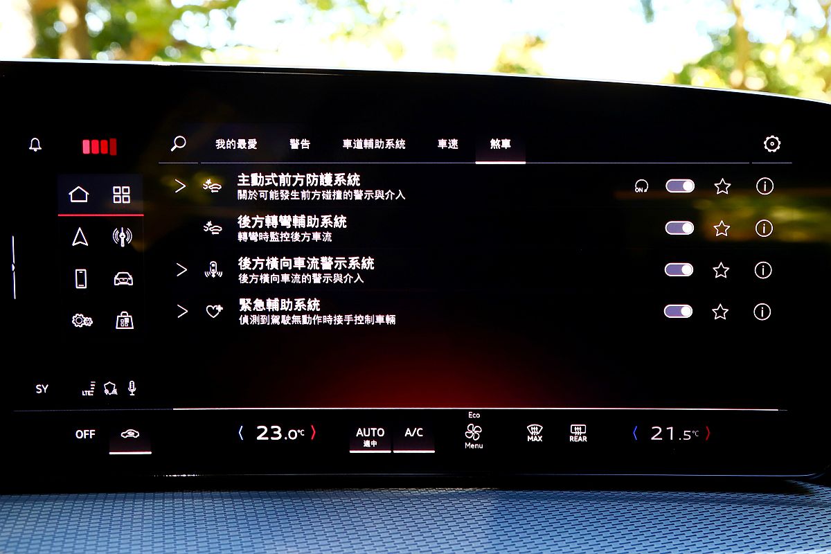 關於缺乏Level 2駕駛輔助系統的硬傷,其實新世代Audi Q5與A5車系都相同,台灣原廠先前就表示是因為測試或認證上的相關問題,目前亞洲部分市場的Audi新世代車型都未開放「車道置中」功能,還需等待原廠確認後才能再改進啟用。