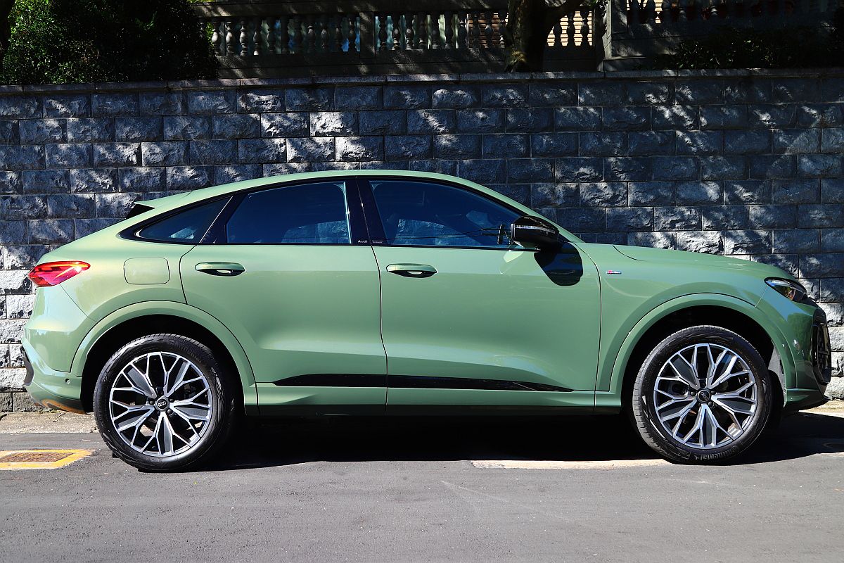 試駕車為台灣導入銷售的中階車型Audi Q5 Sportback TFSI quattro S line運動版,建議售價為新台幣281萬元。外觀升級專屬S line運動化套件以及20吋輪框之外,還額外選配進階黑化套件,包括黑色四環標誌、黑色排氣管、黑色後視鏡外蓋等,選配價格新台幣3萬元。