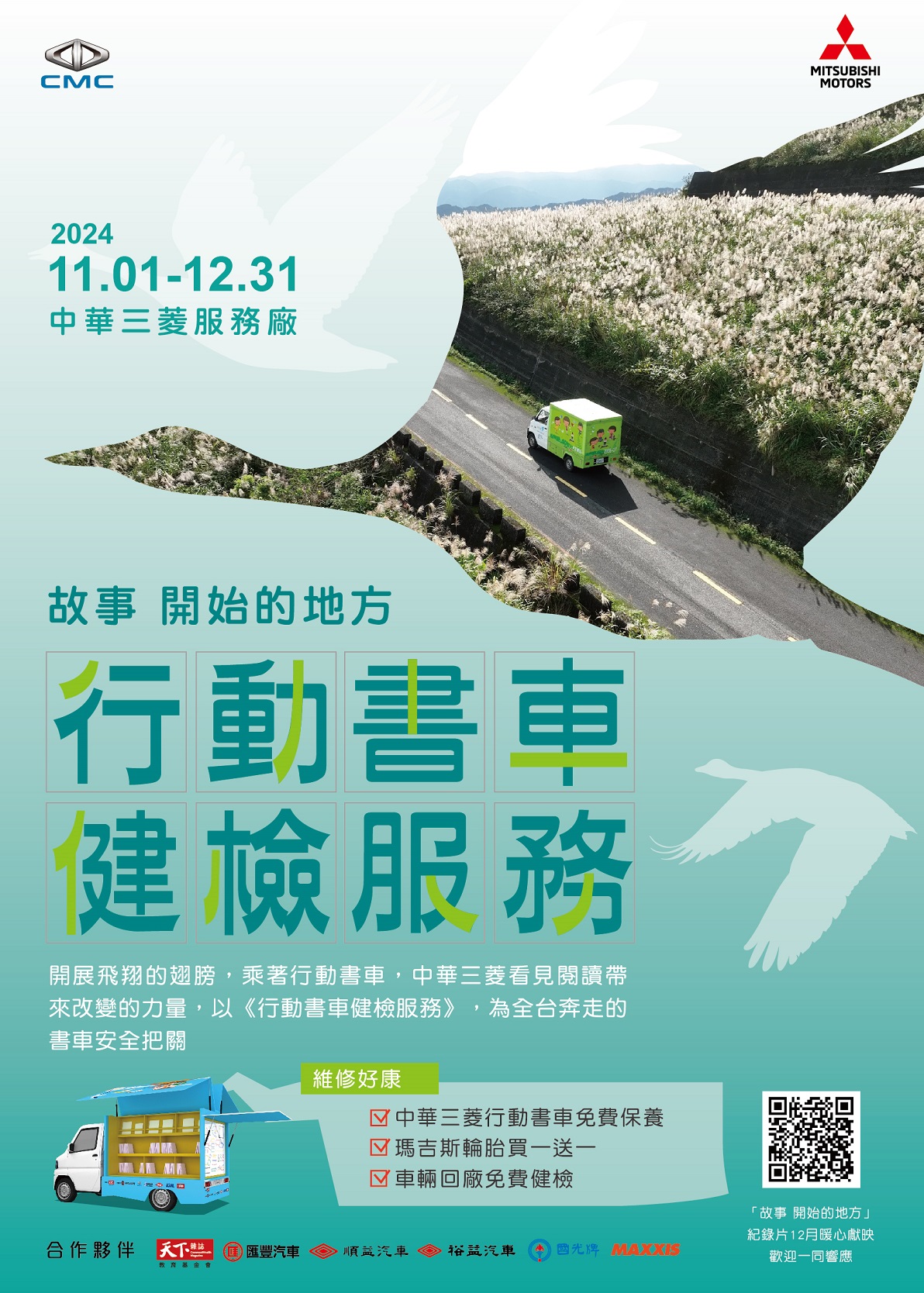 看見閱讀帶來改變的力量!中華三菱2024年展開《行動書車健檢服務》,將攜手天下雜誌教育基金會、MAXXIS瑪吉斯輪胎、台灣中油及中華三菱服務體系共同為全台奔走的書車安全把關,即日起至12月31日止,凡以得利卡或菱利車型改裝之行動書車返廠,即享有免費保養優惠 (免費更換機油、機油芯、保養工資);因應書車上山下海、全台巡迴之需求,健檢期間,針對因書籍載重導致輪胎磨損之車輛,瑪吉斯輪胎(MAXXIS)再加碼提供「MAXXIS瑪吉斯輪胎買一送一」,雙重把關守護書車行駛安全。