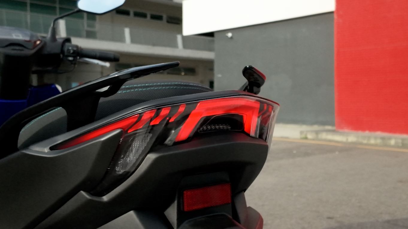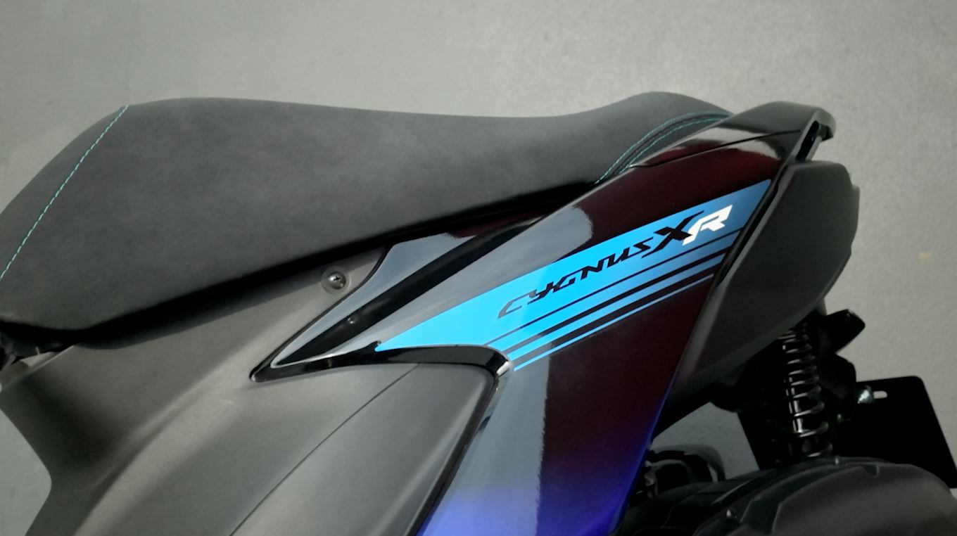 在外觀部分Cygnus XR DX ICON BLUE 155也有著專屬於自己的特色,首先車頭斜板的地方做了兩個小開孔有點像是小翅膀的造型,而尾燈的部分也與125有些許的不同,在尾燈的中段有做了段差的設計,125則是整體較為連貫式的樣式.
