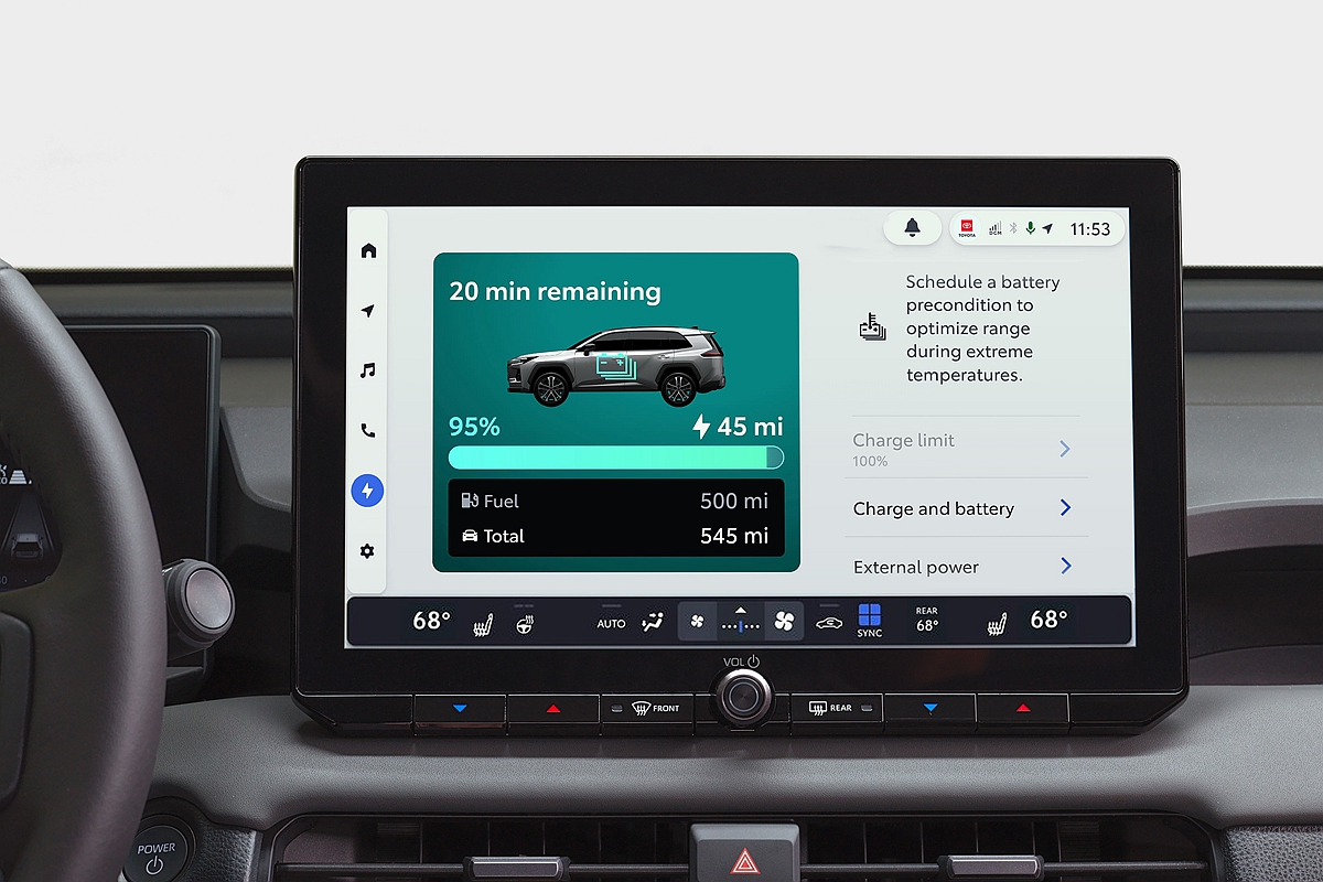 關於未來電動車應用層面,增強版Toyota Audio Multimedia多媒體影音系統也設想到位,導入全新EV Domain功能,能進行充電計劃、充電限制、啟用和停用外部電源等設地,讓駕駛無論身在何處都能輕鬆使用或控制能源。