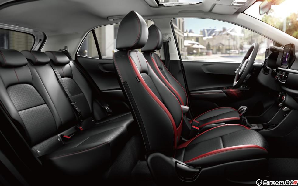 The Picanto內裝採用多樣化材質堆疊,展現質感豐富的空間氛圍,並使用與旗艦轎跑 Stinger 同源的D-Cut跑格化方向盤、皮質排檔頭,與鋁合金油門/煞車踏板,嶄露傲視同級車款的設計與配備等級。不僅如此,X-line及GT-line 透過不同搭配顯露個性:X-line 使用綠色漸層線條在灰白色烤漆門飾版豐富層次,與黑灰雙色皮革座椅的綠色縫線相互呼應;GT-line則以紅色線條畫過黑色門飾板,與黑紅雙色皮椅、紅色車縫線譜出運動跑格。