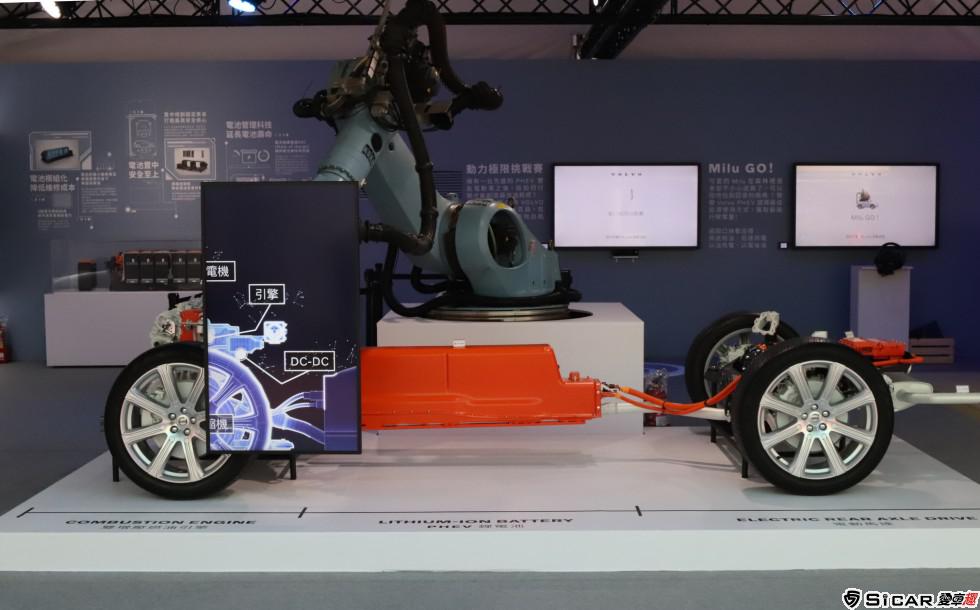 本次 PHEV 雙能電動體驗展特別從瑞典原廠空運一座 PHEV SPA 展示底盤,搭配 IA 機械手臂的掃描展演,讓參觀者能清楚認識底盤的重要功能,以及 Volvo PHEV 系統是如何智慧判別油電切換時機,應用到生活通勤的場景又能為油耗帶來多出色的表現。展區一旁的牆面以深入淺出的文字說明 Volvo PHEV 優勢,包含有別於其他品牌將電池置於車體正中央的目的,讓車體重心偏低,進而提升操控與反應,也可避免不幸事故發生時,電池受到車體擠壓或刺穿的風險,確保整體行車安全性;另一側的牆面將重達700公斤、由 6 顆電池模組串聯而成的 400V 鋰電池組拆開解密,說明 Volvo PHEV 智慧電池管理科技是如何讓電池模組在 15 年後仍能保有 70% 的電能容量。