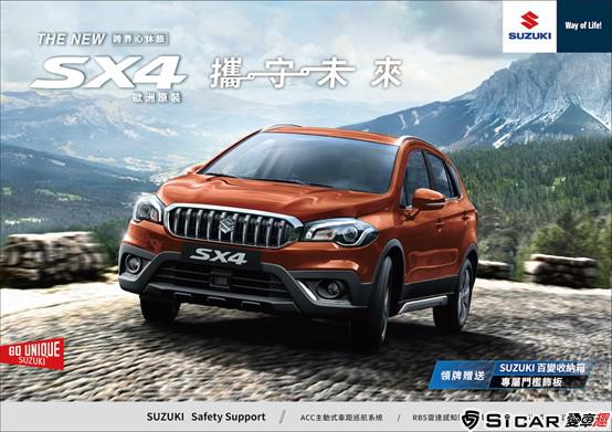 THE NEW SX4全新搭載ACC主動式車距巡航系統及RBS雷達感知煞車輔助,以嶄新的智能安全科技,結合優雅的歐式設計及SUV剽悍外型,搭載SUZUKI新世代動力BOOSTERJET 1.4 L渦輪增壓引擎的跨界休旅THE NEW SX4,標配支援Apple CarPlay® 及 Android Auto™的多功能觸控式螢幕帶給台灣消費者更安心的駕馭心樂趣。