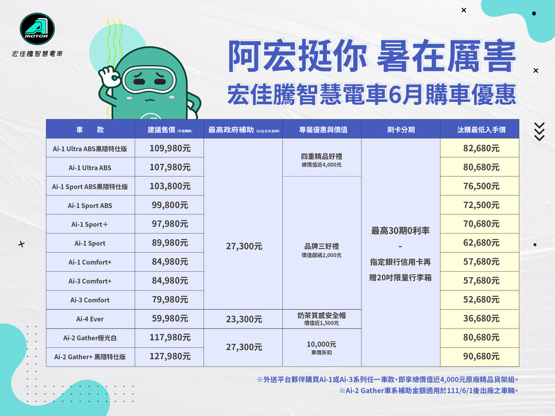 <阿宏挺你 暑在厲害 宏佳騰智慧電車6月購車資訊>