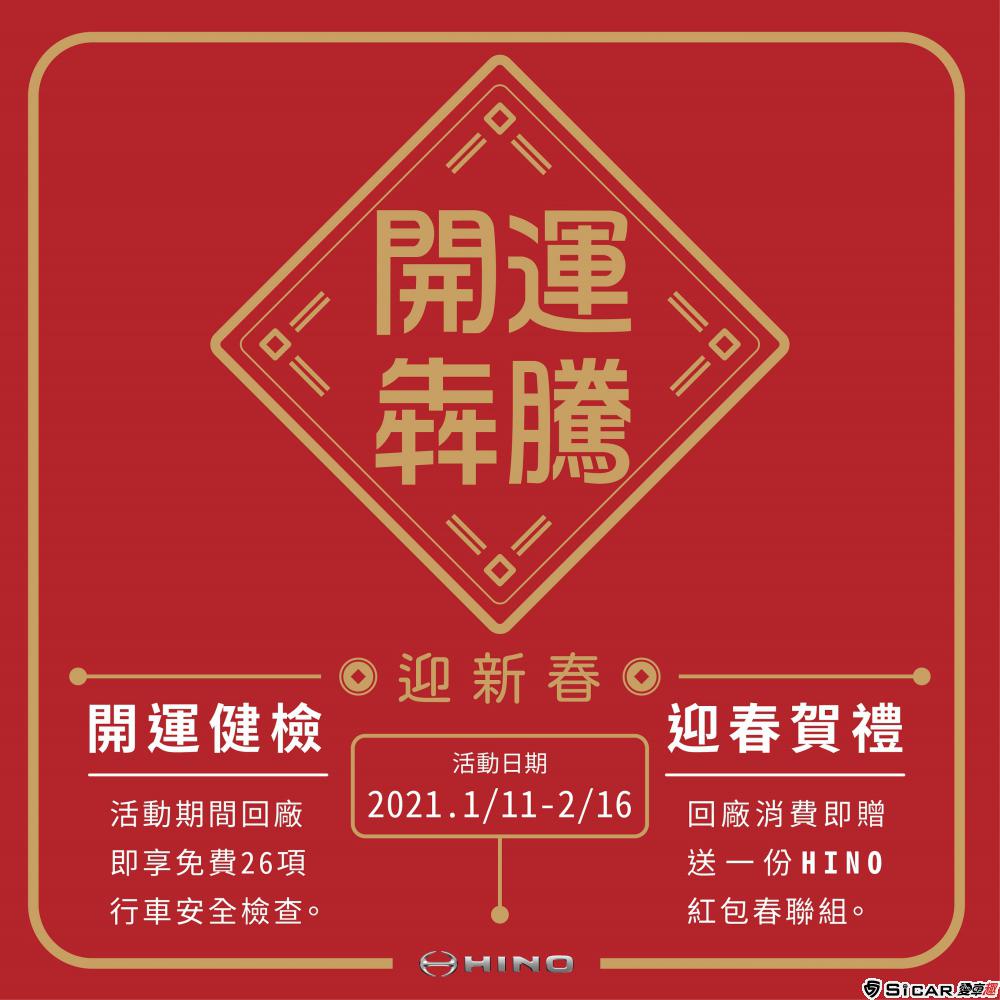 歲末年終,喜迎農曆新春,為讓車主在春節假期行車順利,確保愛車保持在最佳狀態,HINO商用車台灣總代理和泰汽車自2021年1月11日起至2020年2月16日止,舉辦春節 「開運犇騰迎新春」活動,活動期間提供「開運健檢」,免費26項行車檢查,全方位的安全檢測,為車主的安全把關。此外,為感謝車主長期的支持,回廠消費結帳即贈送「迎春賀禮」 (紅包六袋,春聯一枚) 一組 ,紅包以牛年為發想之三款吉祥話做主視覺,搭配簡約幹練的線條設計與紅色及金色的質感配色,讓車主送禮自用兩相宜。贈品數量有限,送完為止。開運健檢-免費26項檢查,確保車主安全