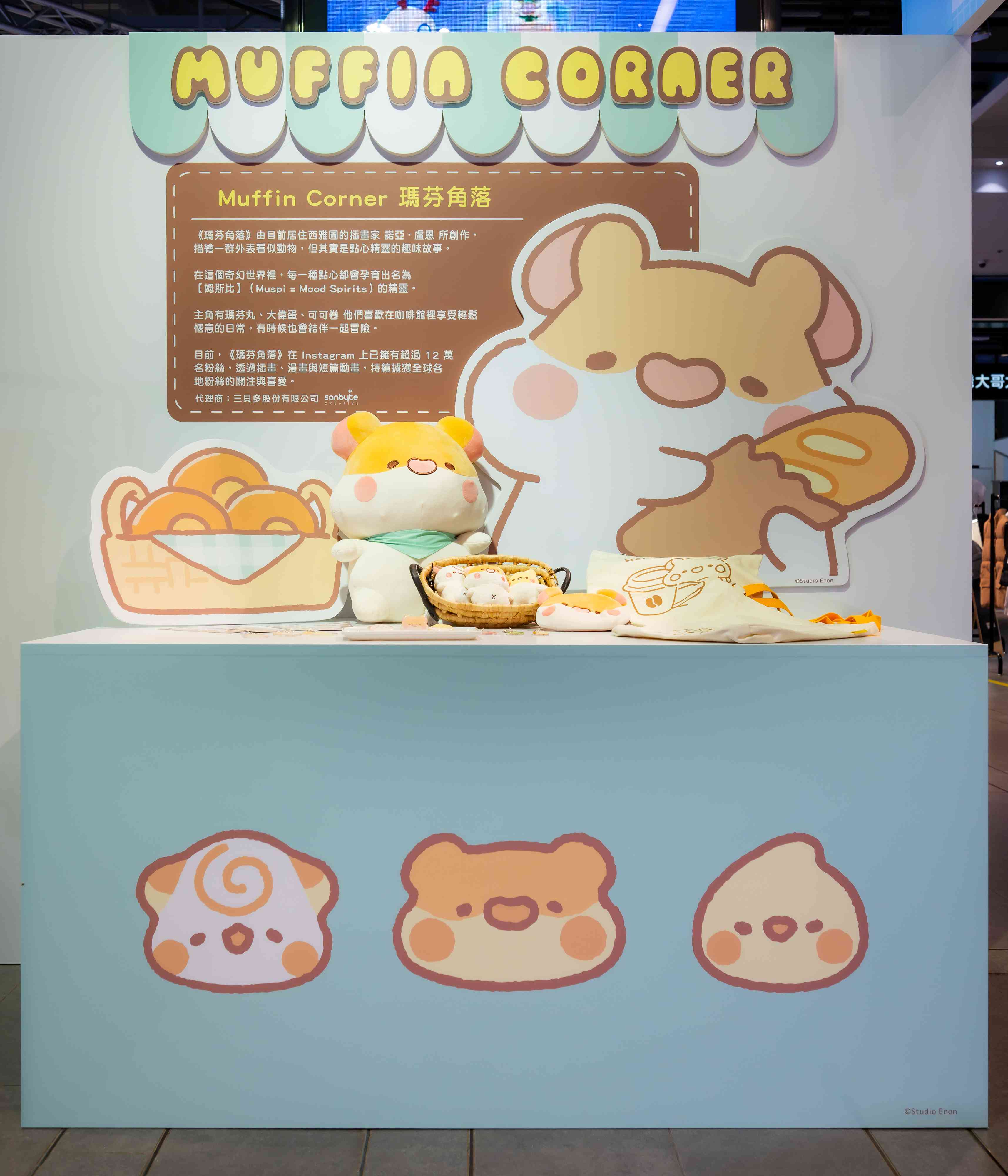 來自奇幻甜點小世界的《瑪芬角落》,在這個可愛國度裡,每一種點心都會孕育出名為姆斯比Muspi (Mood Spirits)的小精靈,主角有軟萌的瑪芬丸、酷酷的大偉蛋及溫柔的可可卷三大主要角色,這次推出的三大最萌打卡點就從迎接粉絲的「瑪芬介紹」開始,以插畫及文字呈現角色們的性格與故事,讓大家更了解甜點精靈們的日常,接著是由小精靈與許多可口麵包帶來的「點心精靈」,彷彿跟他們一起在咖啡館裡享受輕鬆愜意的日常,最後由「瑪芬丸」抱著剛出爐麵包來跟大家合照,療癒度直接爆表!可愛與甜度滿分的三大打卡點一次收藏!