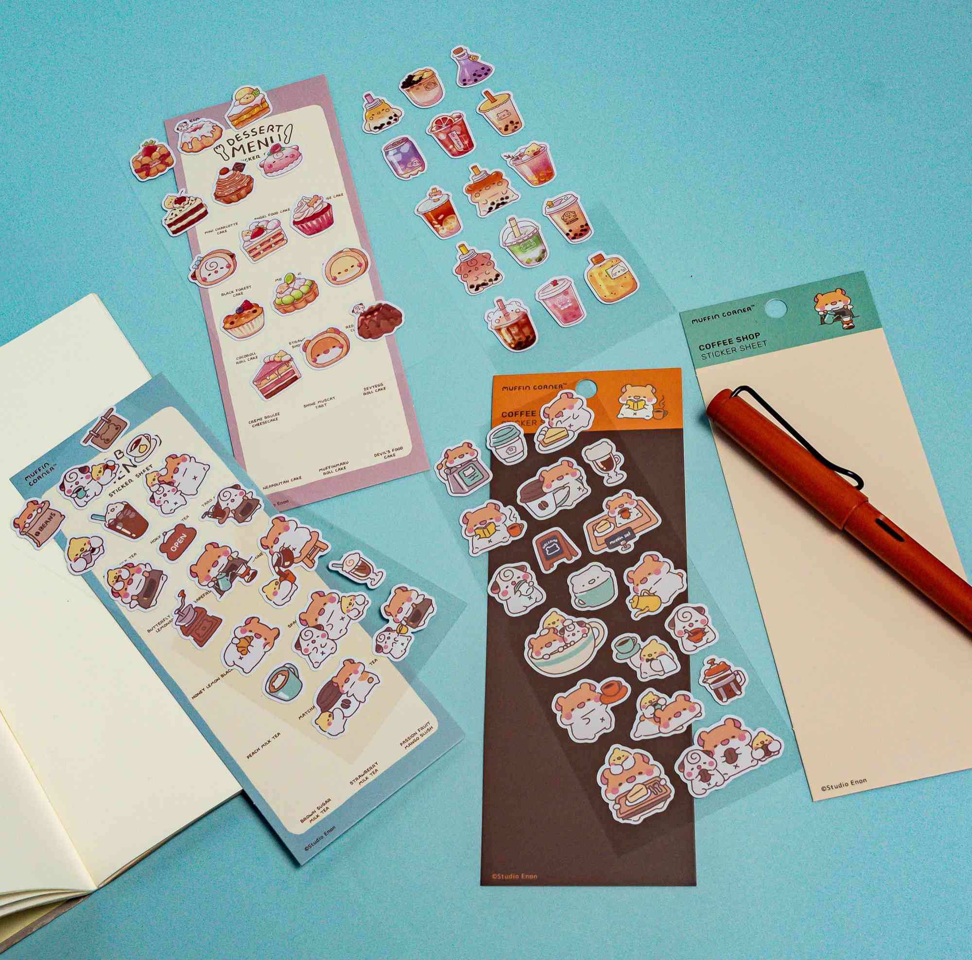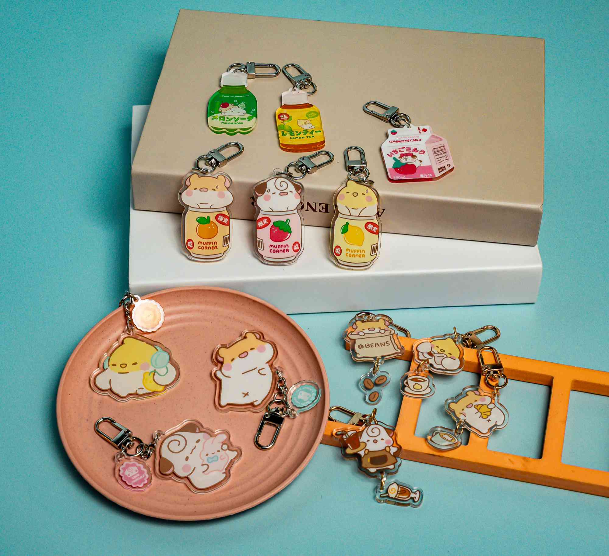 最喜歡在咖啡館裡享受輕鬆愜意日常的精靈們,總是與各種美食分不開,想替筆記本或手機殼加點甜度,絕不能錯過精美可愛的四款「貼紙」,從咖啡店、甜點菜單到奶茶菜單共四個系列一次帶走!甜點也出現在小巧的「鑰匙圈」上,有正能量及咖啡店等三種系列,每一款都以點心與角色組合成俏皮小畫面,上演著點心精靈的趣味故事。由瑪芬丸、大偉蛋及可可卷造型軟Q的「果凍夾」更是文具迷心頭好,夾文件或票券都超吸睛,快來把瑪芬角落的甜蜜感與幸福感通通搜刮回家!