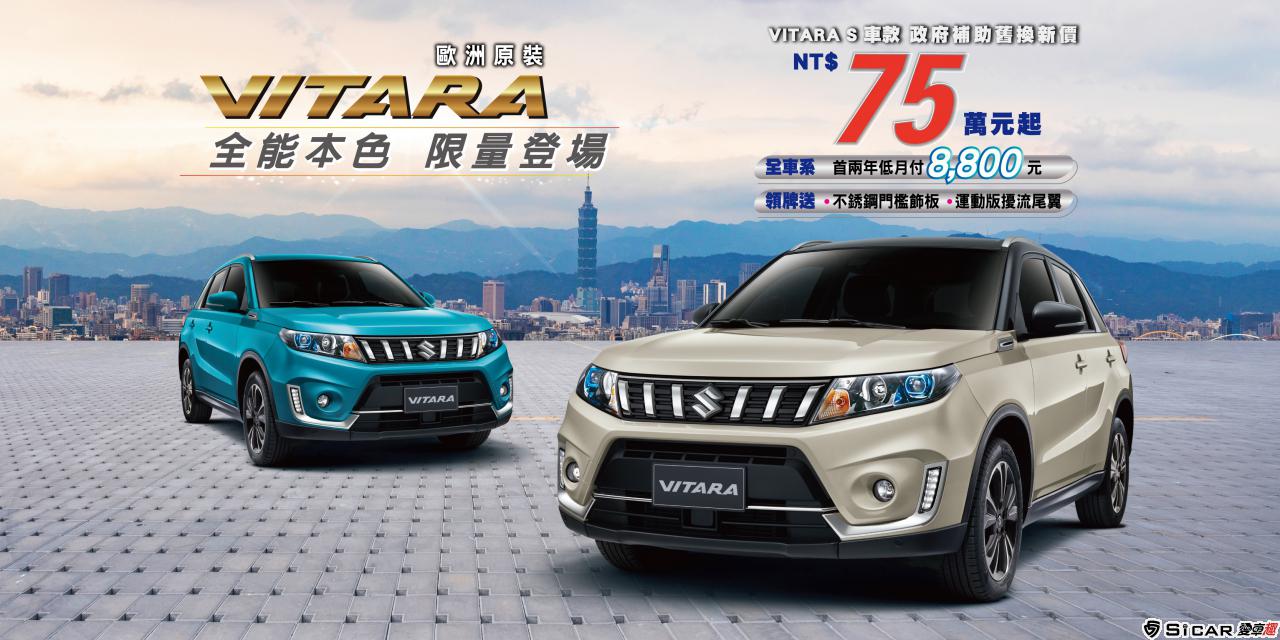 全能休旅的全能本色!VITARA也推出三重優惠回饋每位支持VITARA的車主!VITARA S車款政府補助舊換新優惠價只要75萬元起!另外VITARA全車系首兩年低月付,只要8,800元,而且領牌就送不鏽鋼門檻飾板、運動版擾流尾翼。