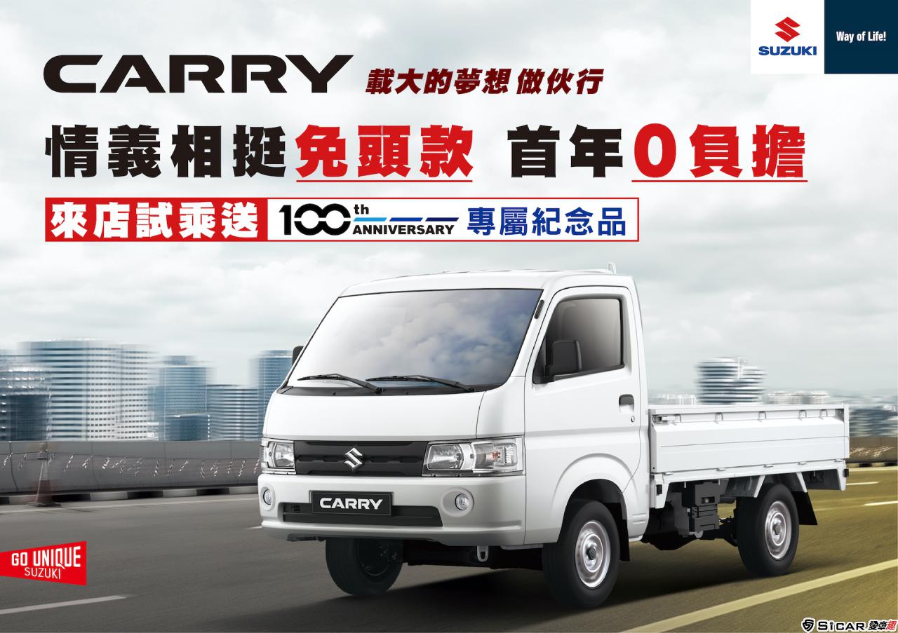 全新世代CARRY以超越同級的超大載重、節能油耗及靈活操控等堅強實力,獲得全台年輕創業頭家們的肯定。TAIWAN SUZUKI推出史無前例的超激優惠,入主CARRY不僅購車免頭款,更享等值首年月付額的萬元大紅包,獲得頭家們的熱烈迴響,本月優惠不間斷,力挺全民拼經濟,讓更多頭家輕鬆做生意。