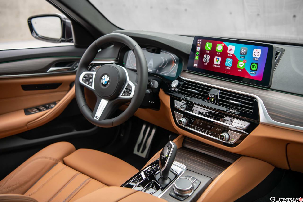 駕駛導向的中控檯造型中,同樣配置新世代全數位虛擬座艙,兩只大尺寸12.3吋螢幕提供行車時所有資訊與娛樂需求,透過無線連結Apple CarPlay或Android Auto智慧型手機整合系統,可將中控觸控螢幕畫面轉換成熟悉的智慧型手機使用介面,特定APP應用程式無縫接軌流暢使用。全方位的BMW Personal Copilot智慧駕駛輔助科技同樣以最高規格標準配備於全新BMW 5系列Touring上,考量後廂載重需求,BMW 520i M Sport Touring更針對後軸配備氣壓懸吊系統,主動調整車身水平高度,載重時維持車輛重心平衡,同步兼顧行路穩定性與乘坐舒適度。全新BMW 5系列Touring同樣配備有車壇首創的iPhone手機數位鑰匙功能,需要輕便外出時,無需再攜帶傳統車鑰匙,隨身的iPhone手機就可控制車輛解鎖、上鎖功能,滿足旅行車車主浪漫且豐富多樣化的生活面貌。