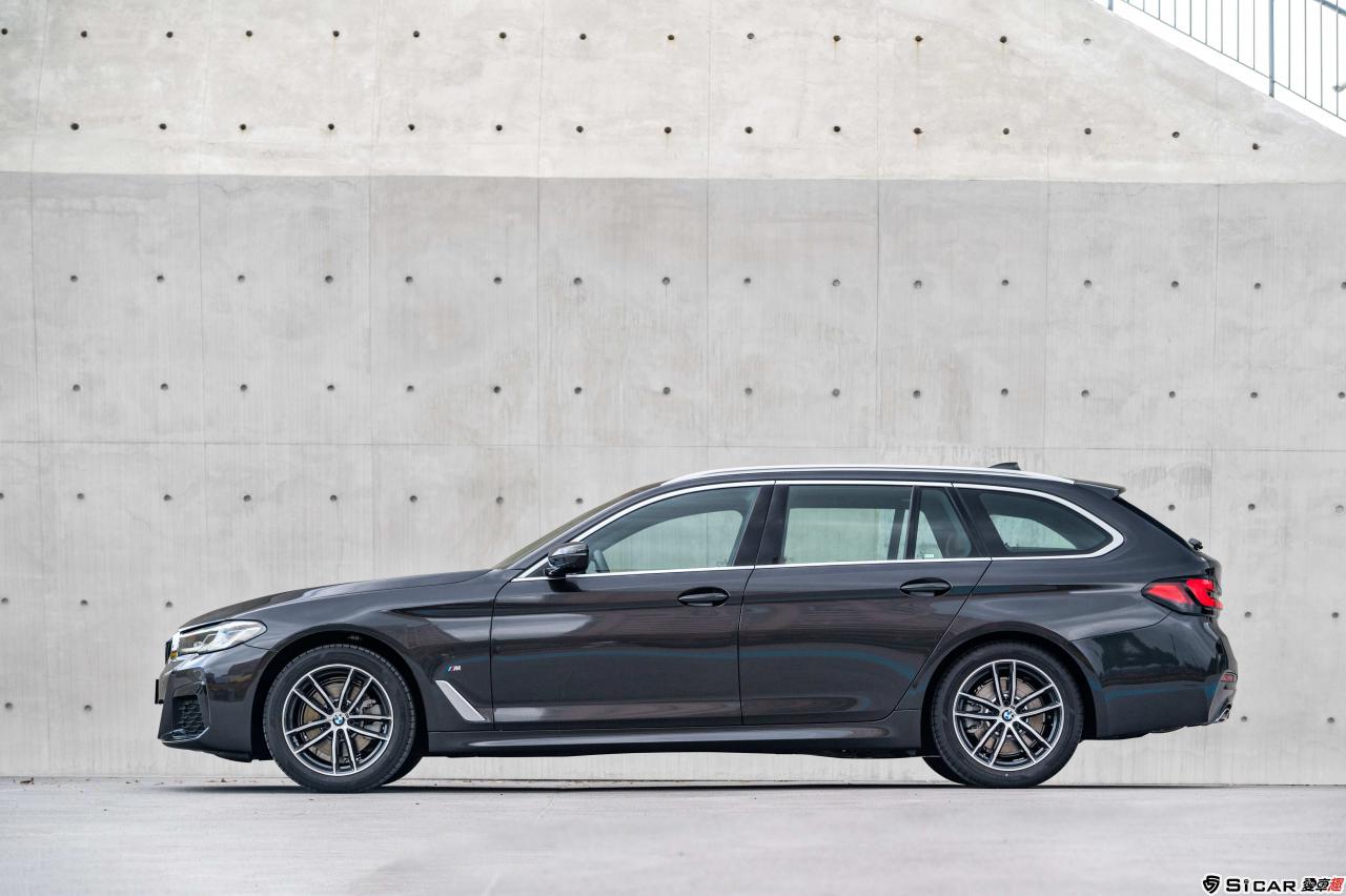 全新BMW 5系列Touring引進BMW 520i M Sport Touring動力車型,外觀上配備彰顯運動個性之M Sport套件,擁有M款空力套件與M款專屬輪圈式樣,座艙內也以黑色高光澤與鍍鉻材質搭配Sensatec 2.0皮質跑車座椅,並擁有椅背菱格紋縫線與透氣孔設計。動力部分,搭載BMW TwinPower Turbo直列4汽缸汽油引擎,擁有184匹最大馬力與290牛頓米的最大扭力,配置Steptronic八速手自排變速箱,可於8.3秒完成0-100km/h加速過程,極速達225km/h。BMW EfficientDynamics高效動力科技同樣於全新BMW 5系列Touring上再次進化,48V高效複合動力的導入,完美實現低油耗與高性能表現之BMW純粹駕馭樂趣,美好的風格旅行就此展開。
