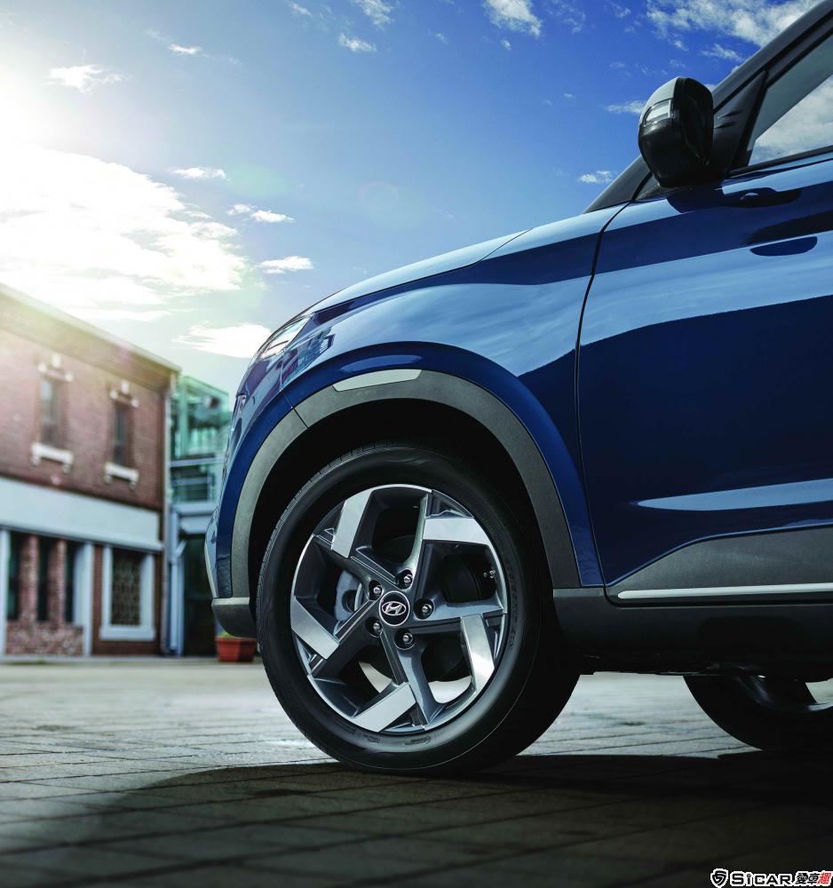 除了超搶鏡的車頭,The All-New VENUE也運用外凸輪拱和深刻腰線的設計,讓整體車側線條更具視覺效果,加上整合式方向燈後視鏡、17吋雙色切削五輻鋁圈