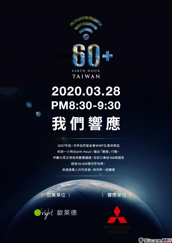 全球暖化日趨嚴重,中華三菱連續2年響應「地球1小時」(Earth Hour)全球性環境公益活動,3月28日晚間8:30至9:30將與全世界共同關燈一小時,偕同匯豐汽車、順益汽車、裕益汽車經銷商所屬全台112家展示中心、127家服務廠,將關閉銷售及服務據點中不需使用的招牌燈、裝飾燈,並延長關燈時間至隔日,為保護地球盡一份心力。2019至2020年中華三菱透過關燈節能行動,相當於為地球減低3,082公斤的碳排放量,期望以實際減碳行動改善氣候變遷問題,帶領車主節能、減碳、愛地球。