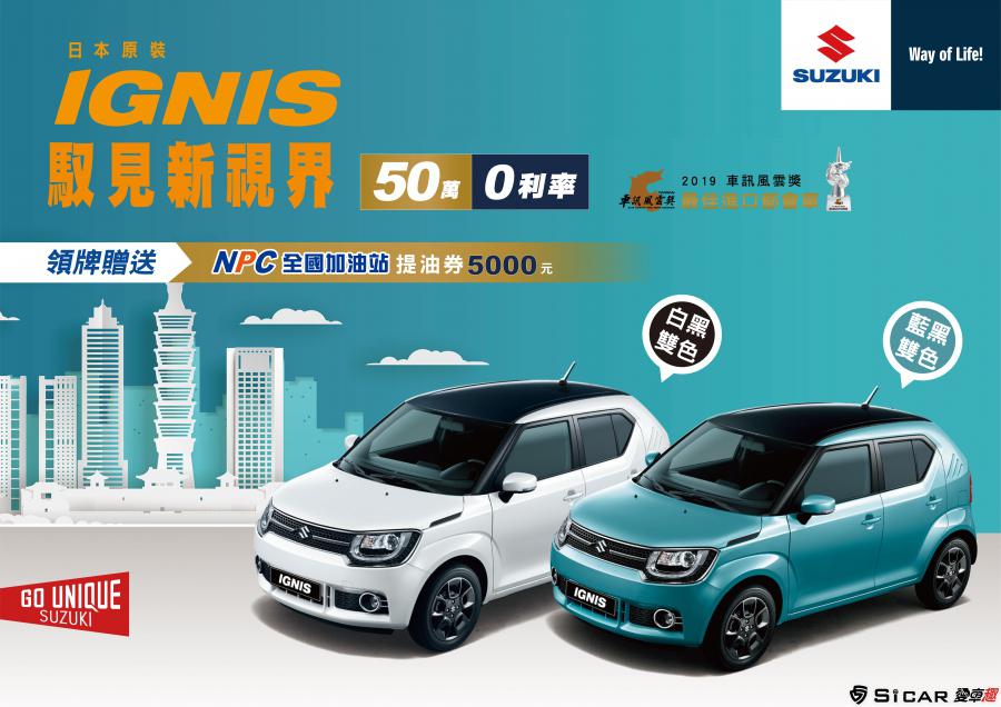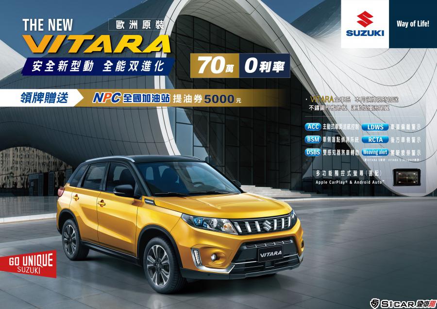 為了感謝台灣車主2019年的支持愛護,並且讓更多消費者享受SUZUKI獨特的駕馭體驗及優質服務,TAIWAN SUZUKI本月特別推出「雙喜臨門」方案,即日起至2月底,精選四款銷售車種:含SX4、VITARA、BALENO和IGNIS,購車享高額0利率,領牌再送5,000元加油金的雙重優惠,輕鬆入主SUZUKI新車正是時候。同時,TAIWAN SUZUKI也為全台的頭家加油!本月入主ALL-NEW CARRY,領牌即享5,000元加油金,打拼事業更加游刃有餘。限時優惠錯過不再,快到最近的經銷商試乘賞車。